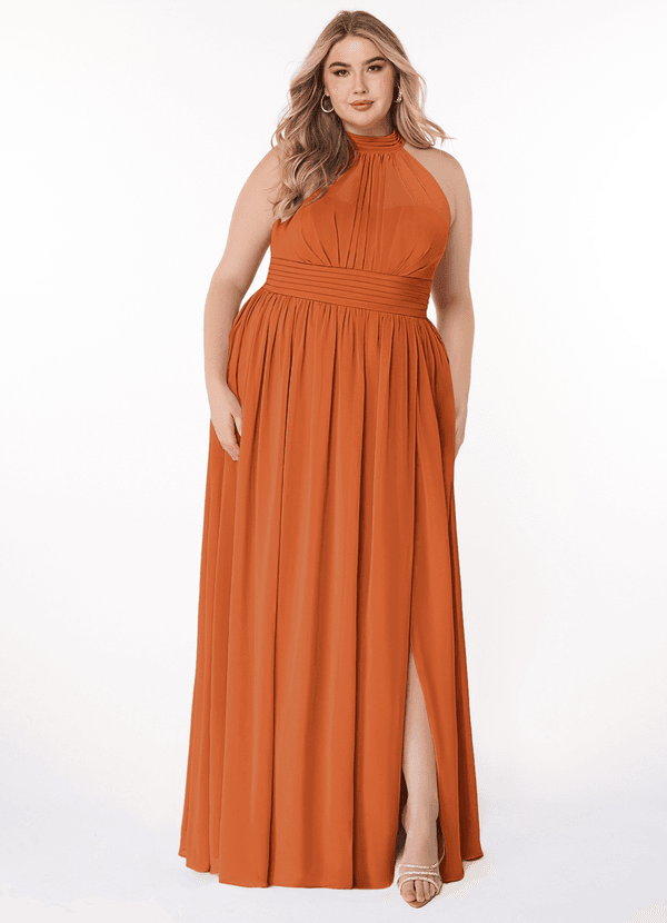 Cinnamon A-Line A-Line Ruched Chiffon Dress