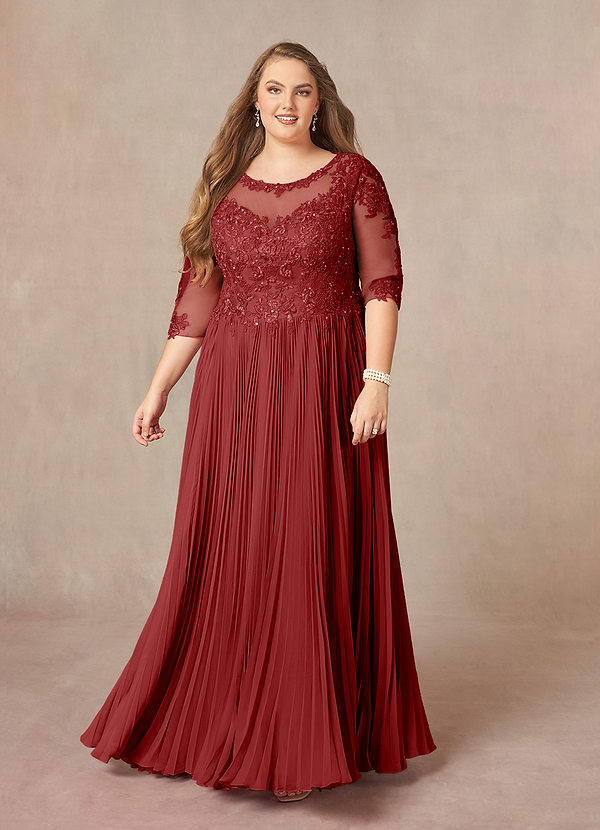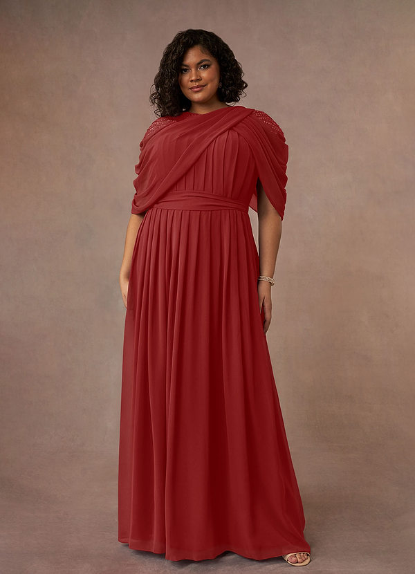 Rust A-Line Pleated Chiffon Dress