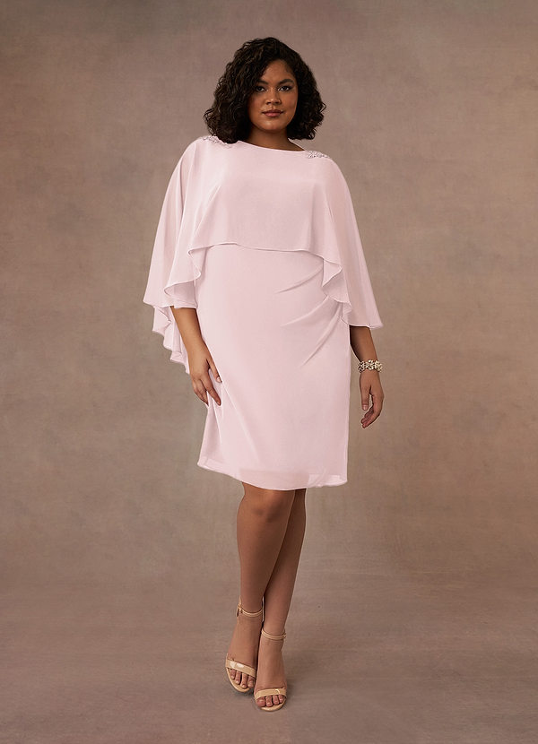 Blushing Pink Sheath Scoop Pleated Chiffon Dress