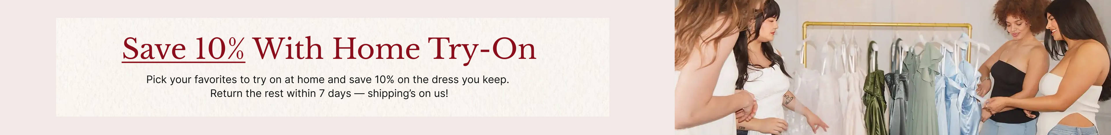 Azazie's try-on-at-home program helps take the guesswork out of buying a wedding dress online. Brides to be can select up to three sample wedding dresses of their choice, for $15 each, to try on at home at their convenience. Azazie covers shipping costs both ways, providing a return label to send your samples back in one week. We want to make it easy for you to find the perfect gown for your special day. Include your closest friends and consider planning a try on event with your bridal party!