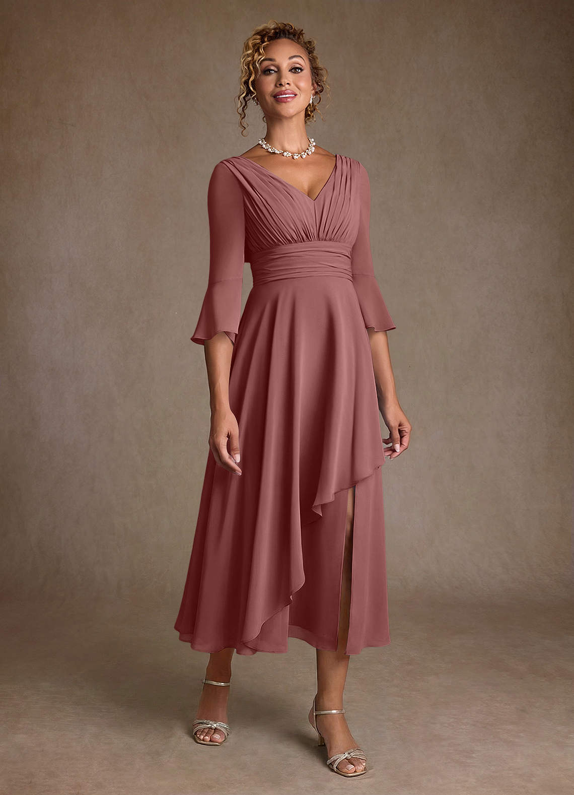 Desert Rose A-Line Pleated Chiffon Dress
