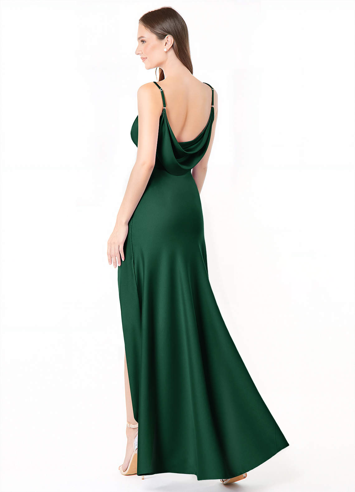 Dark Green Mermaid Side Slit Stretch Satin Dress