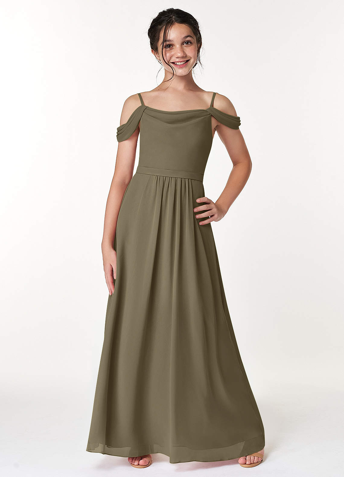 Willow Green A-Line Off the Shoulder Chiffon Dress