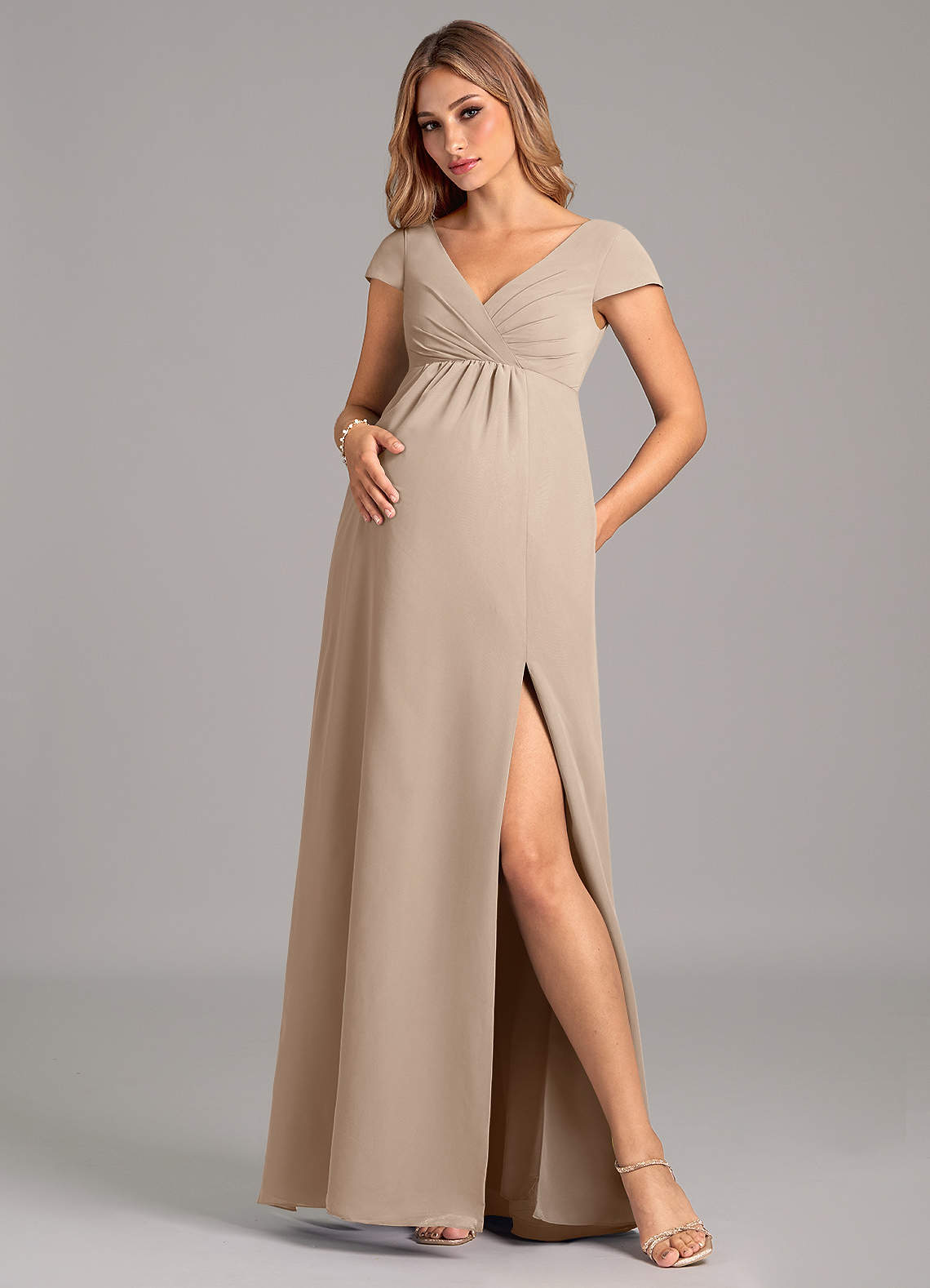 A-Line Pleated Chiffon Floor-Length Dress Taupe