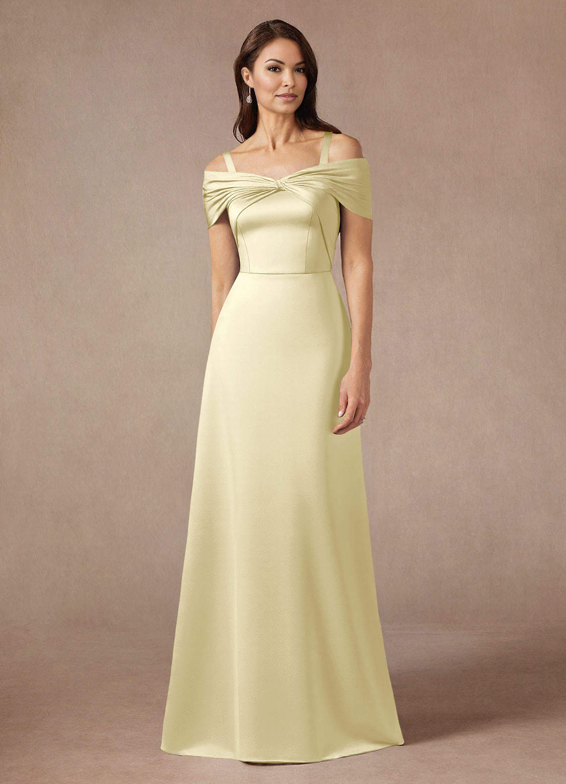 Lemon Sorbet A-Line Off the Shoulder Stretch Satin Dress