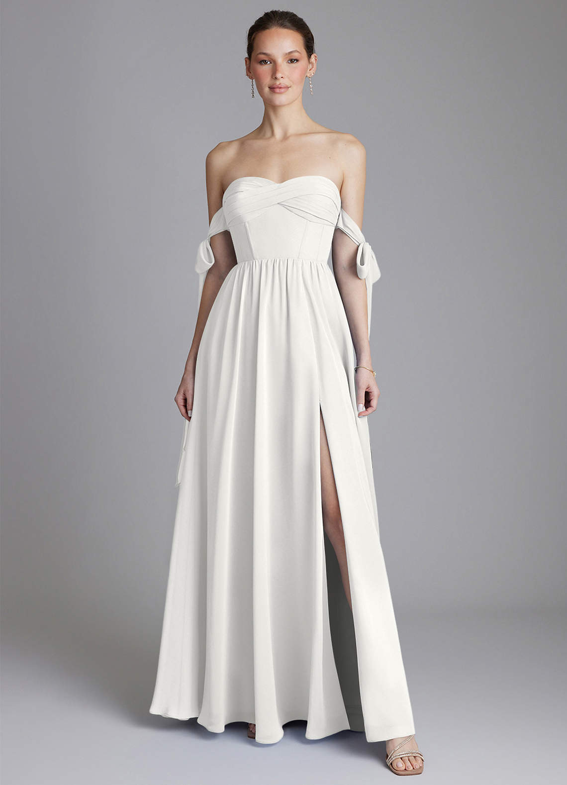 White A-Line Off the Shoulder Chiffon Dress