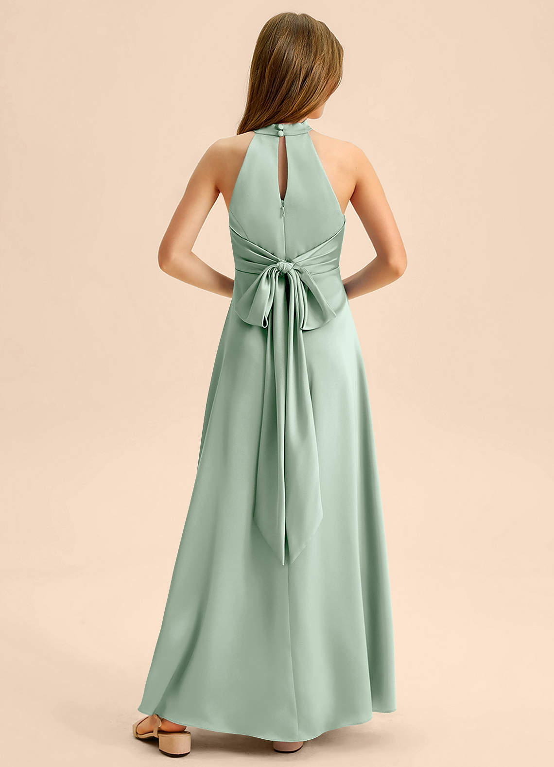 Agave A-Line Pleated Stretch Satin Dress