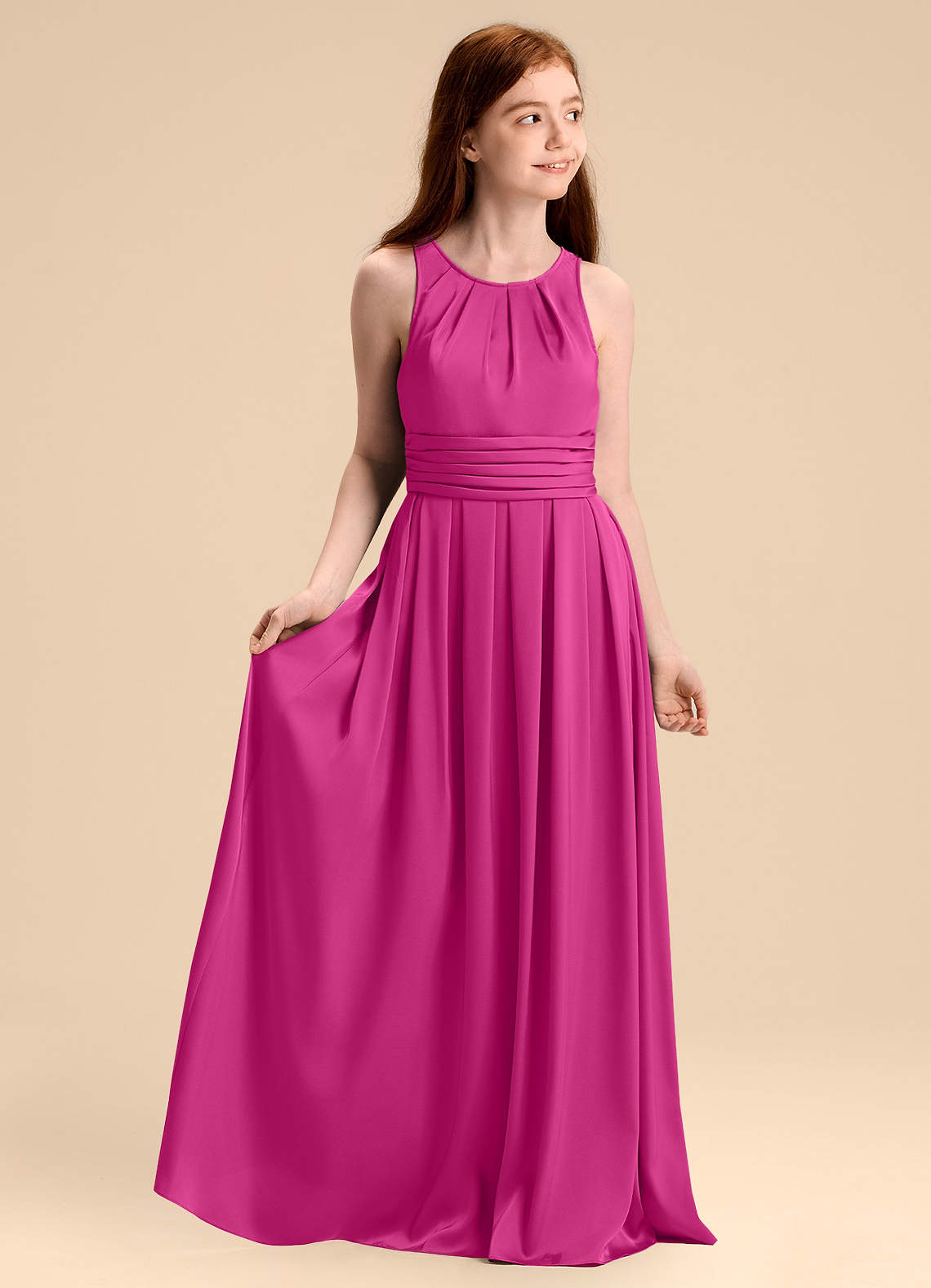 Fuchsia A-Line Pleated Stretch Satin Dress