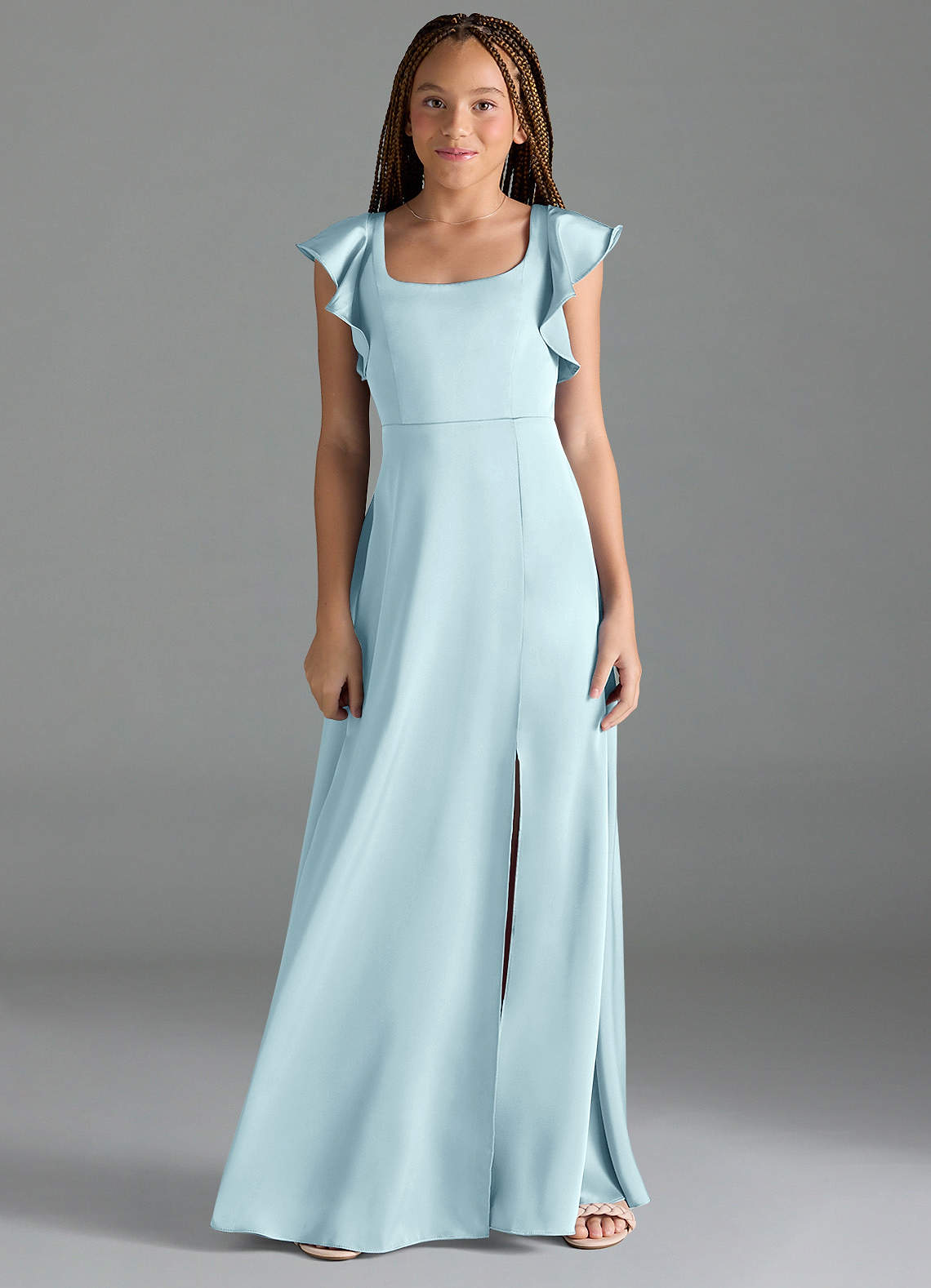 Cloud Blue A-Line Side Slit Stretch Satin Dress