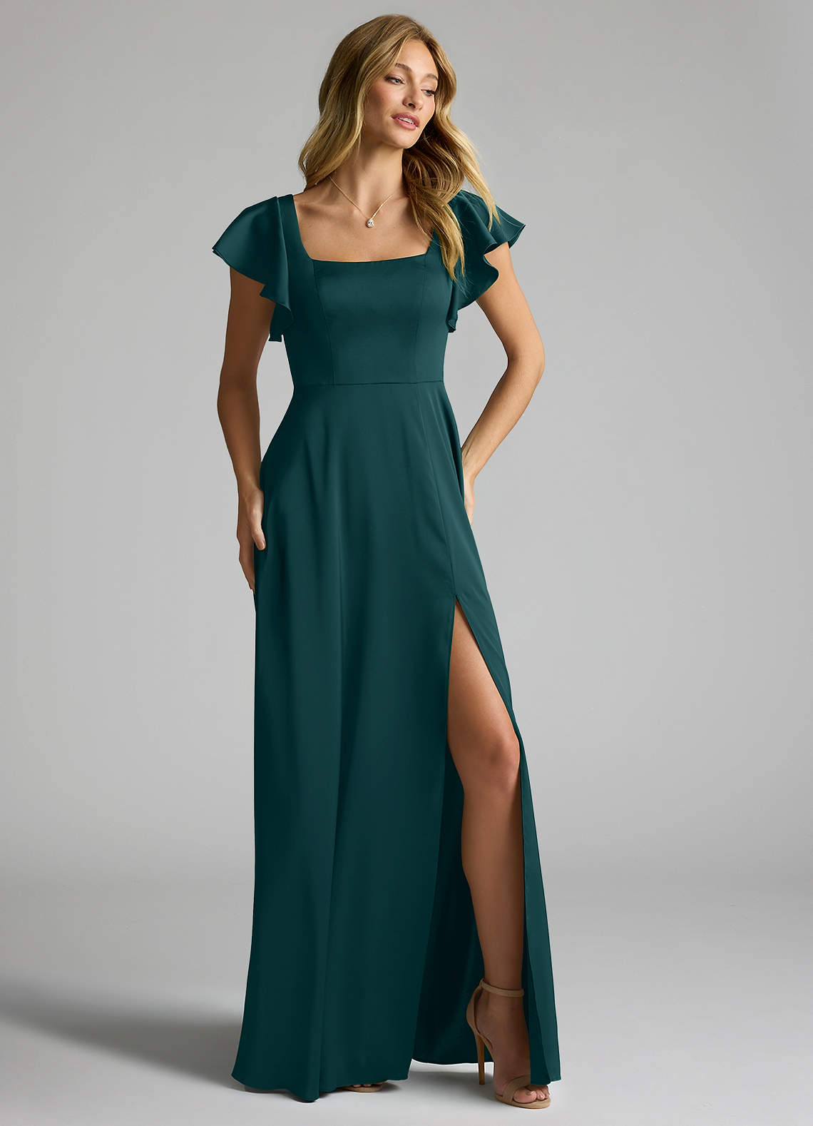 Pine A-Line Bow Stretch Satin Dress