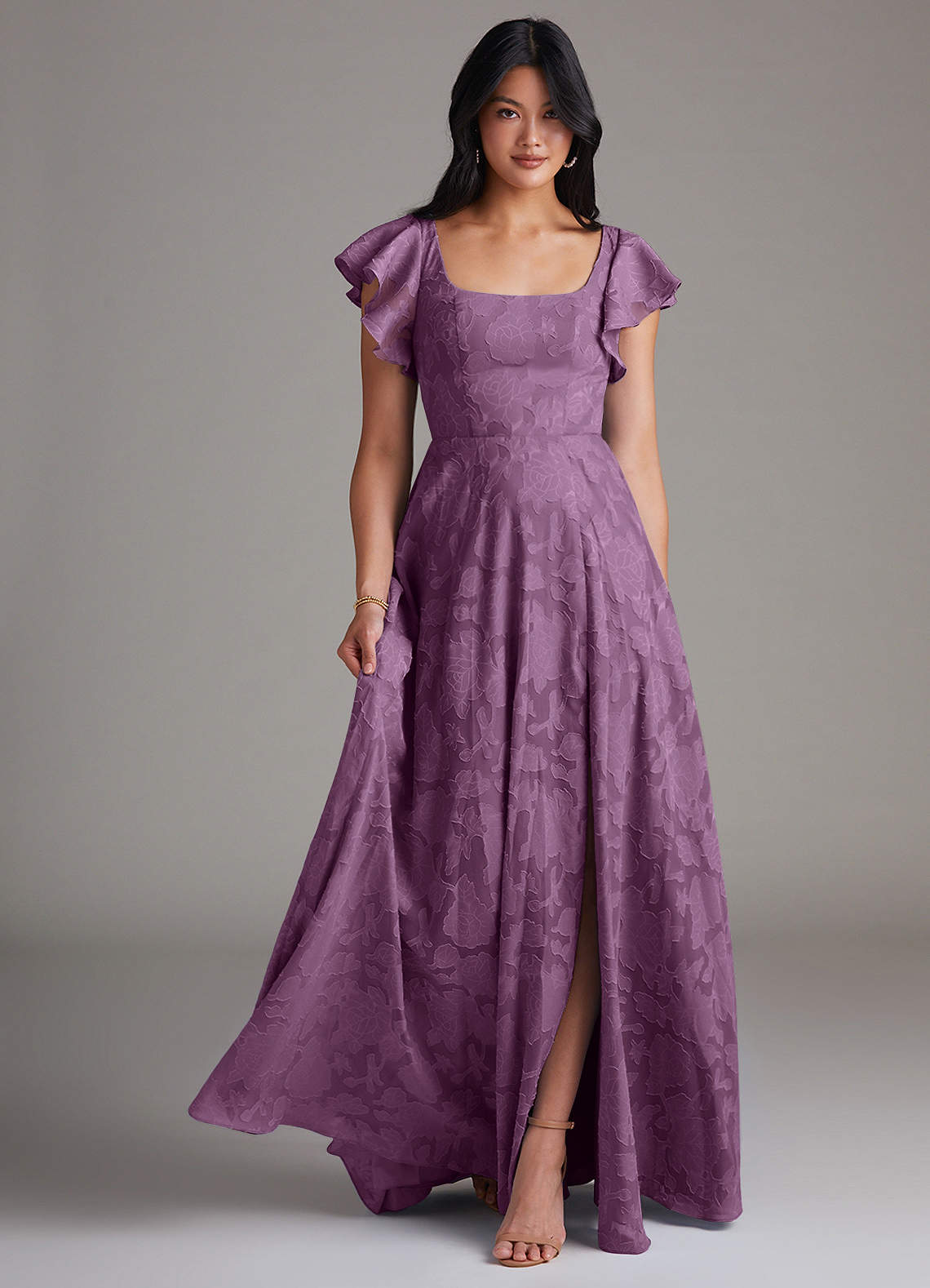 Wisteria A-Line Side Slit Floral Burnout Dress