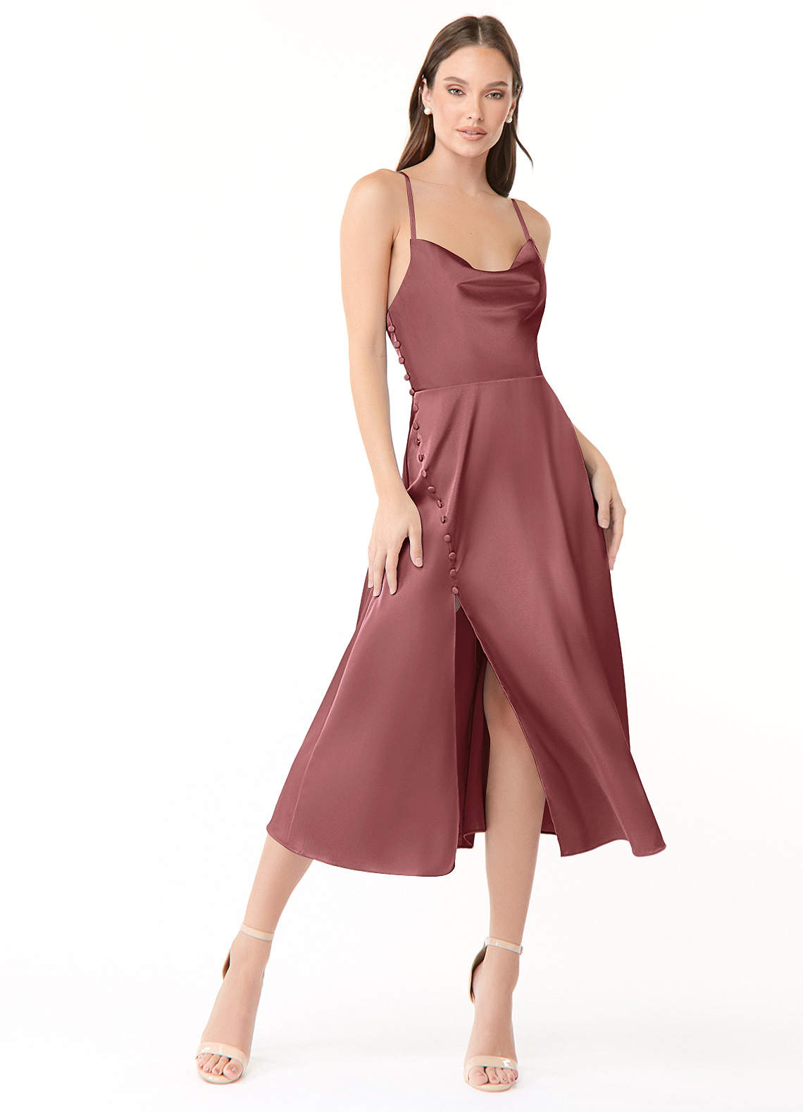 Terracotta A-Line Side Slit Stretch Satin Dress