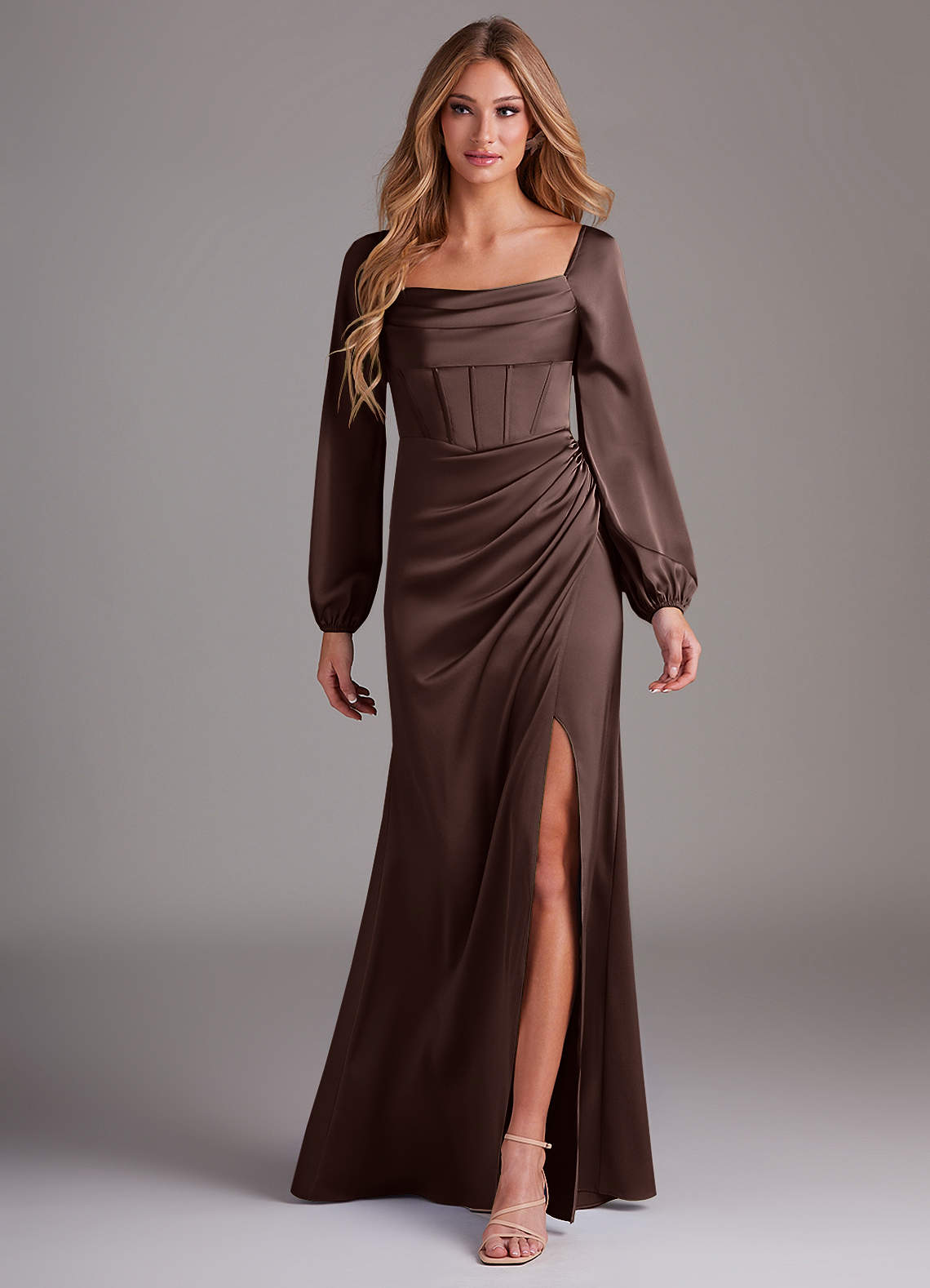 Ganache Sheath Long Sleeve Stretch Satin Dress
