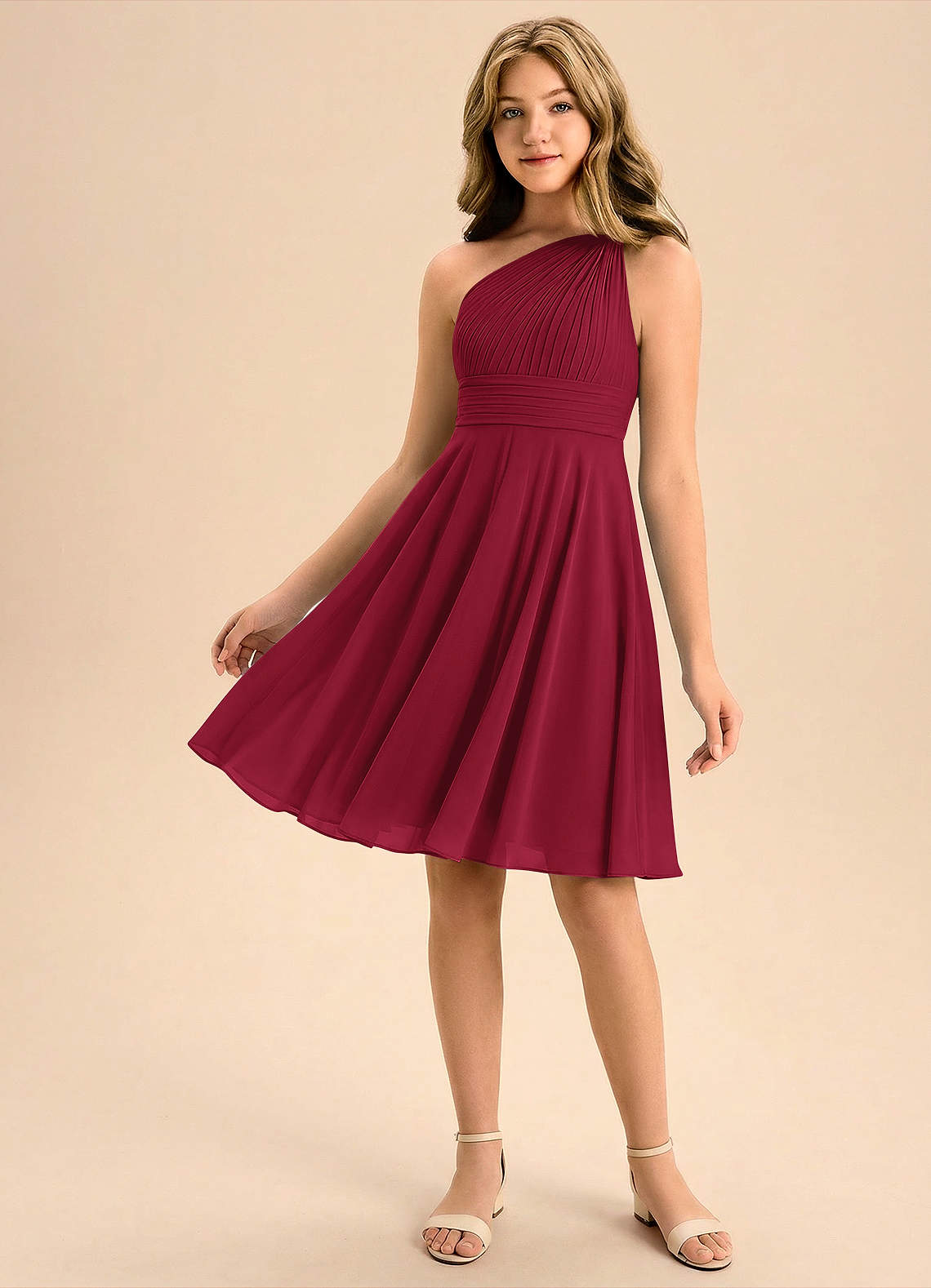Burgundy A-Line Pleated Chiffon Dress
