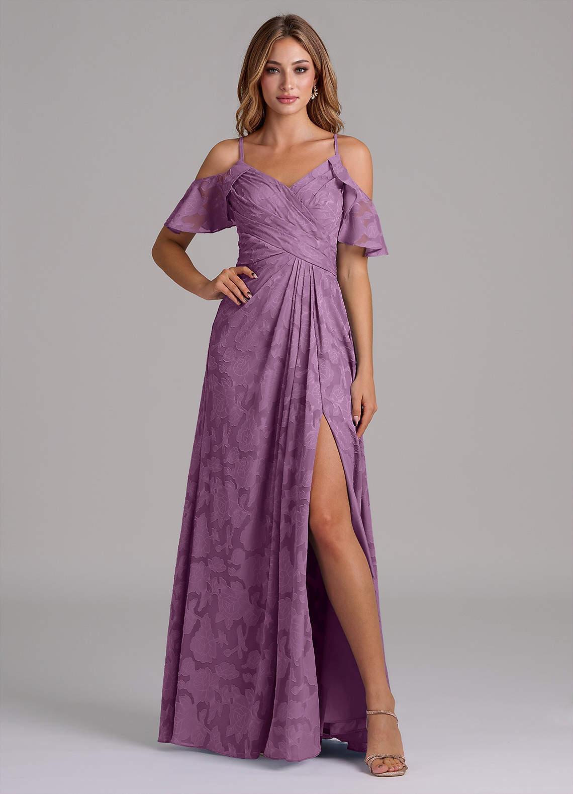 Wisteria A-Line Off the Shoulder Floral Burnout Dress