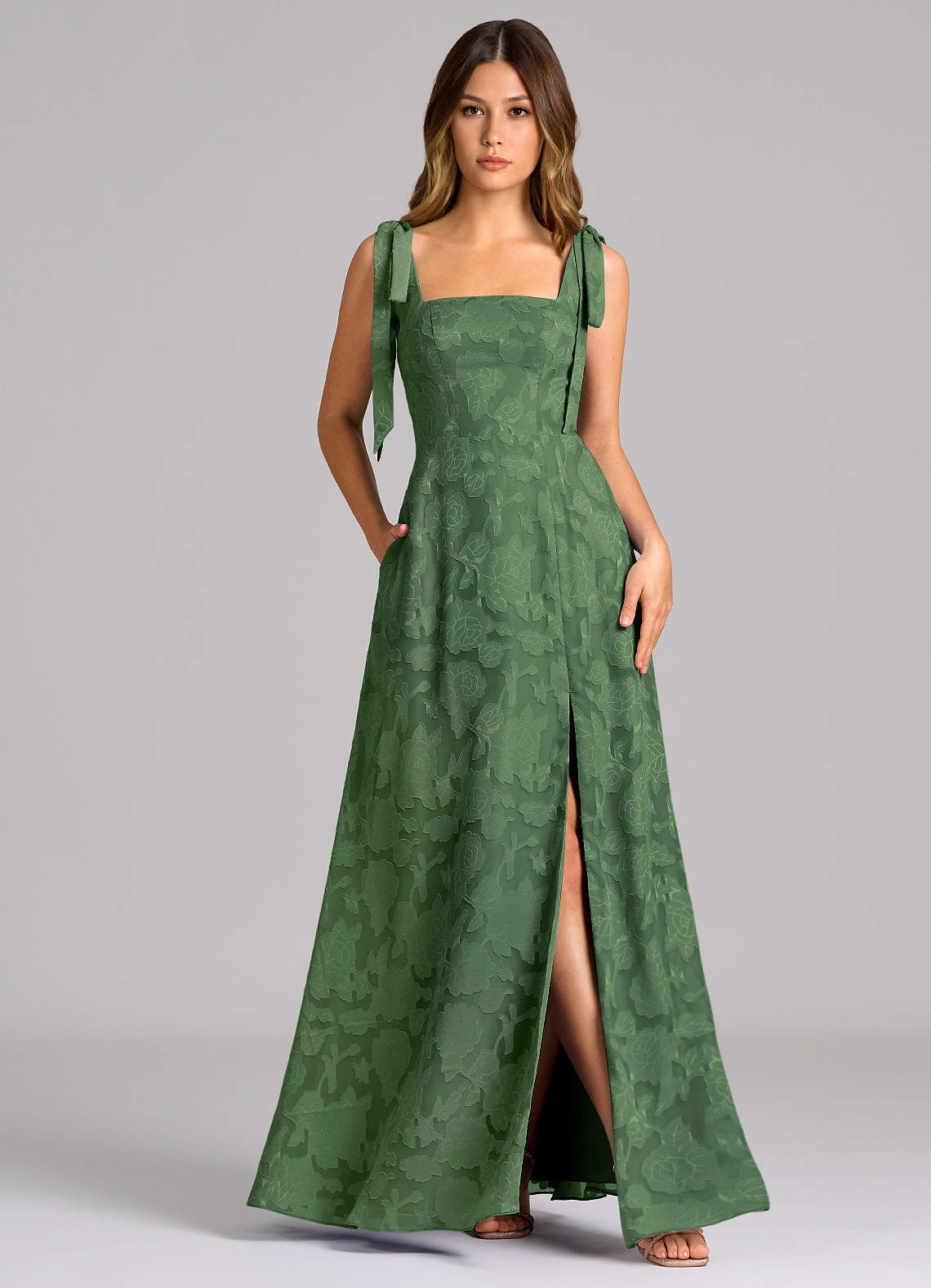 Eucalyptus A-Line with Pockets Floral Burnout Dress