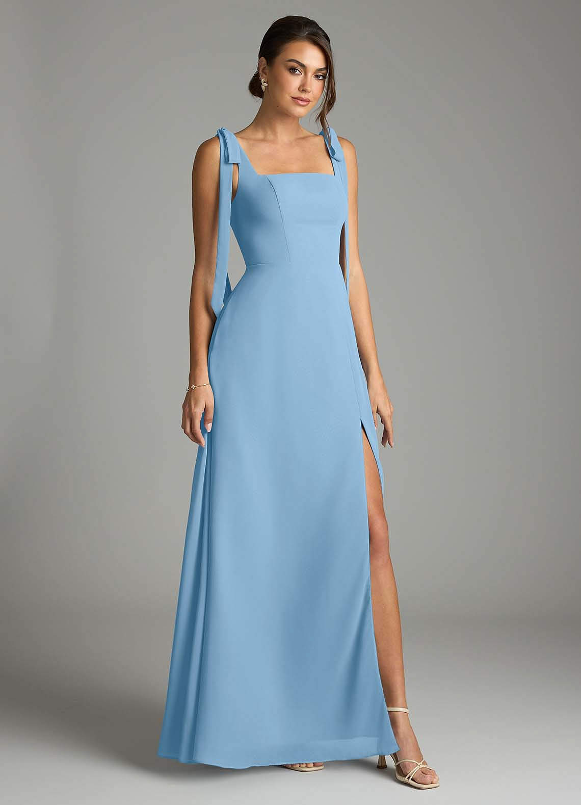 Steel Blue A-Line with Pockets Chiffon Convertible Dress