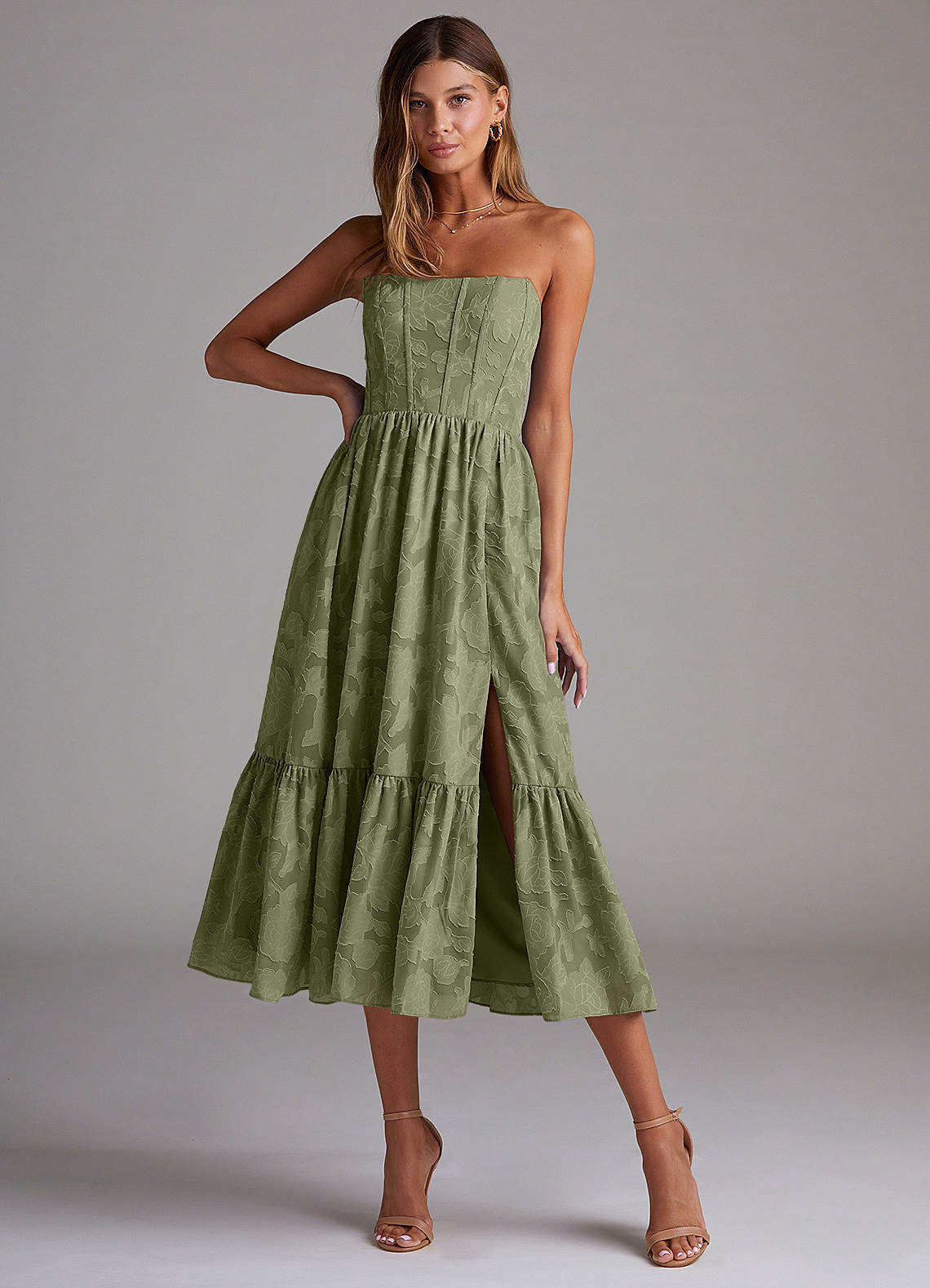 Pistachio A-Line Strapless Floral Burnout Convertible Dress