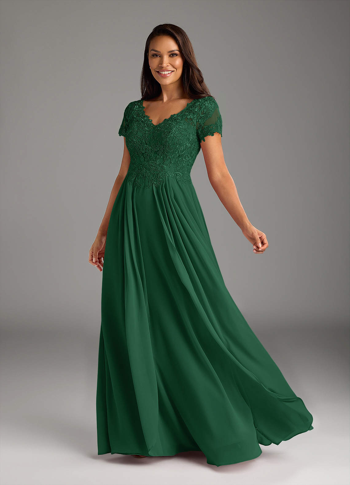 Dark Green A-Line V-Neck Lace Chiffon Dress