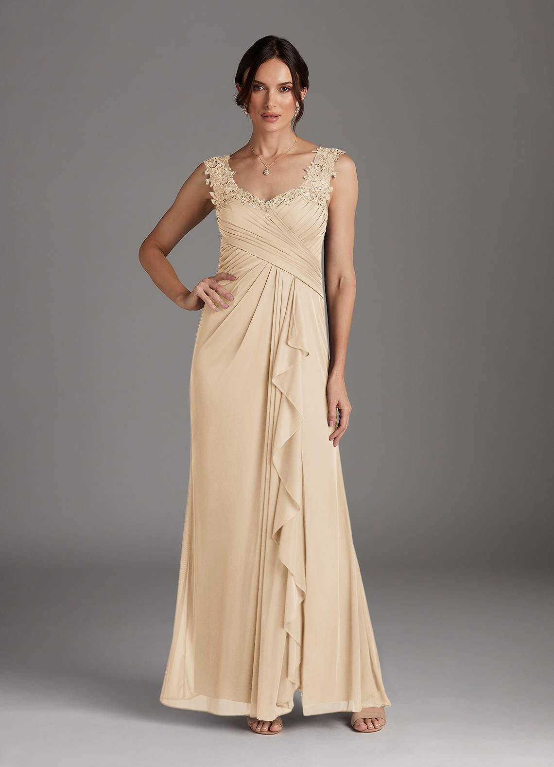 Champagne A-Line Sweetheart Neckline Pleated Mesh Dress