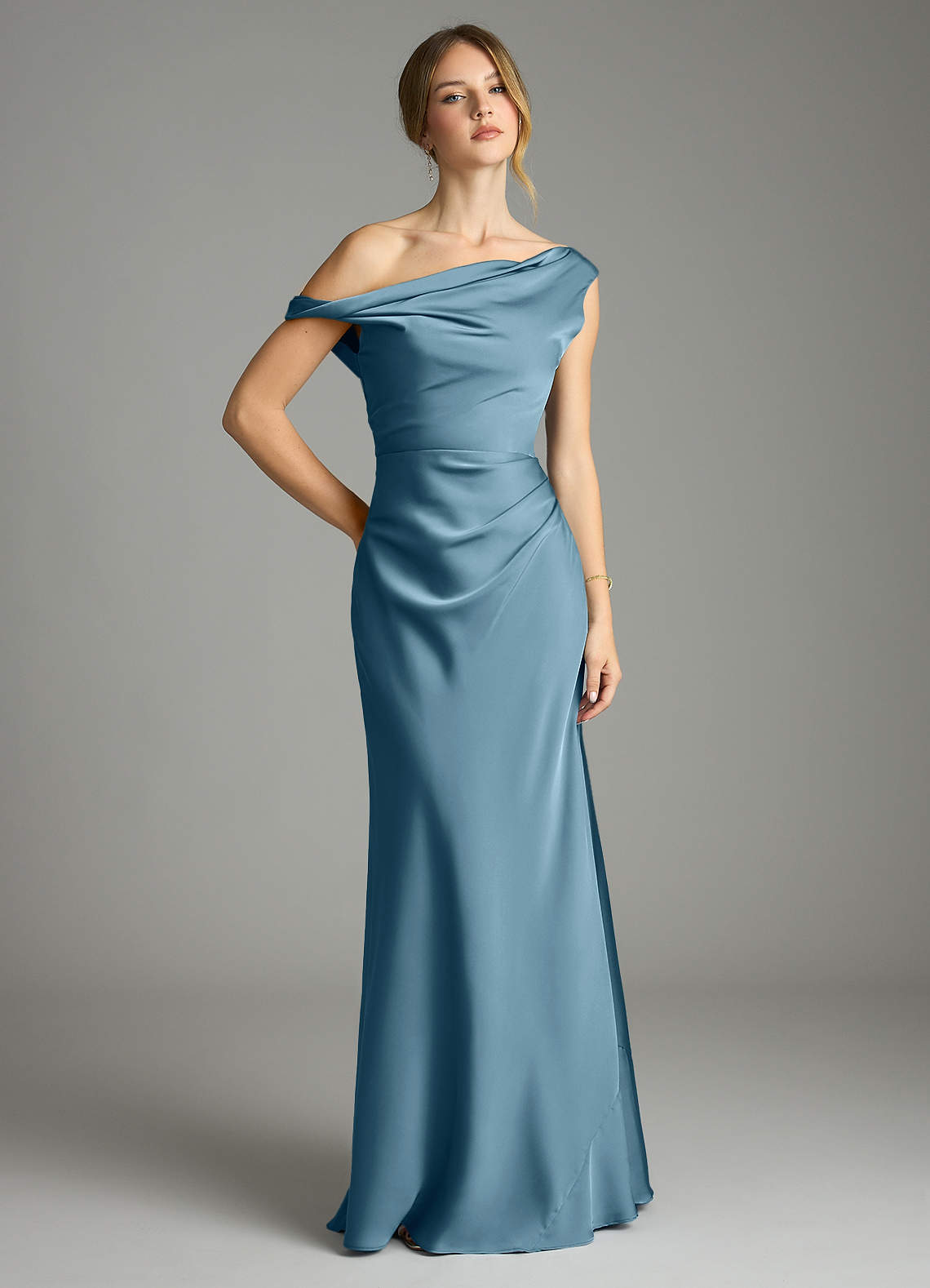 Bermuda Mermaid Off the Shoulder Stretch Satin Dress