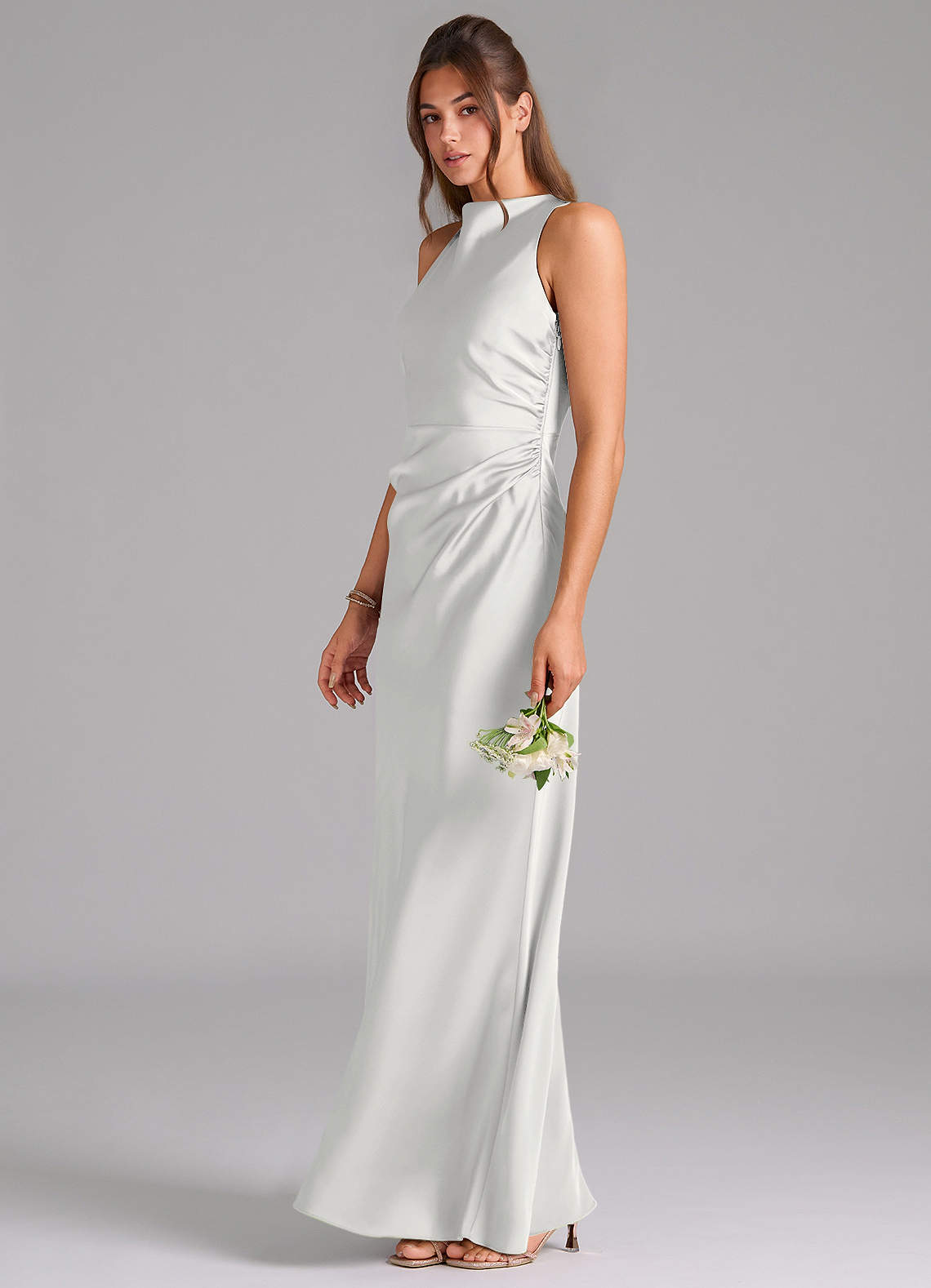 White Sheath Pleated Stretch Satin Dress