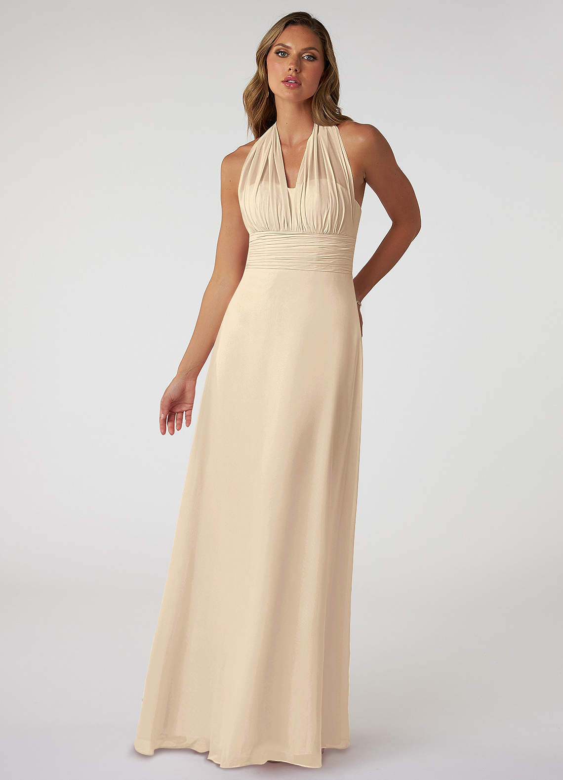 Champagne A-Line Strapless Chiffon Convertible Dress