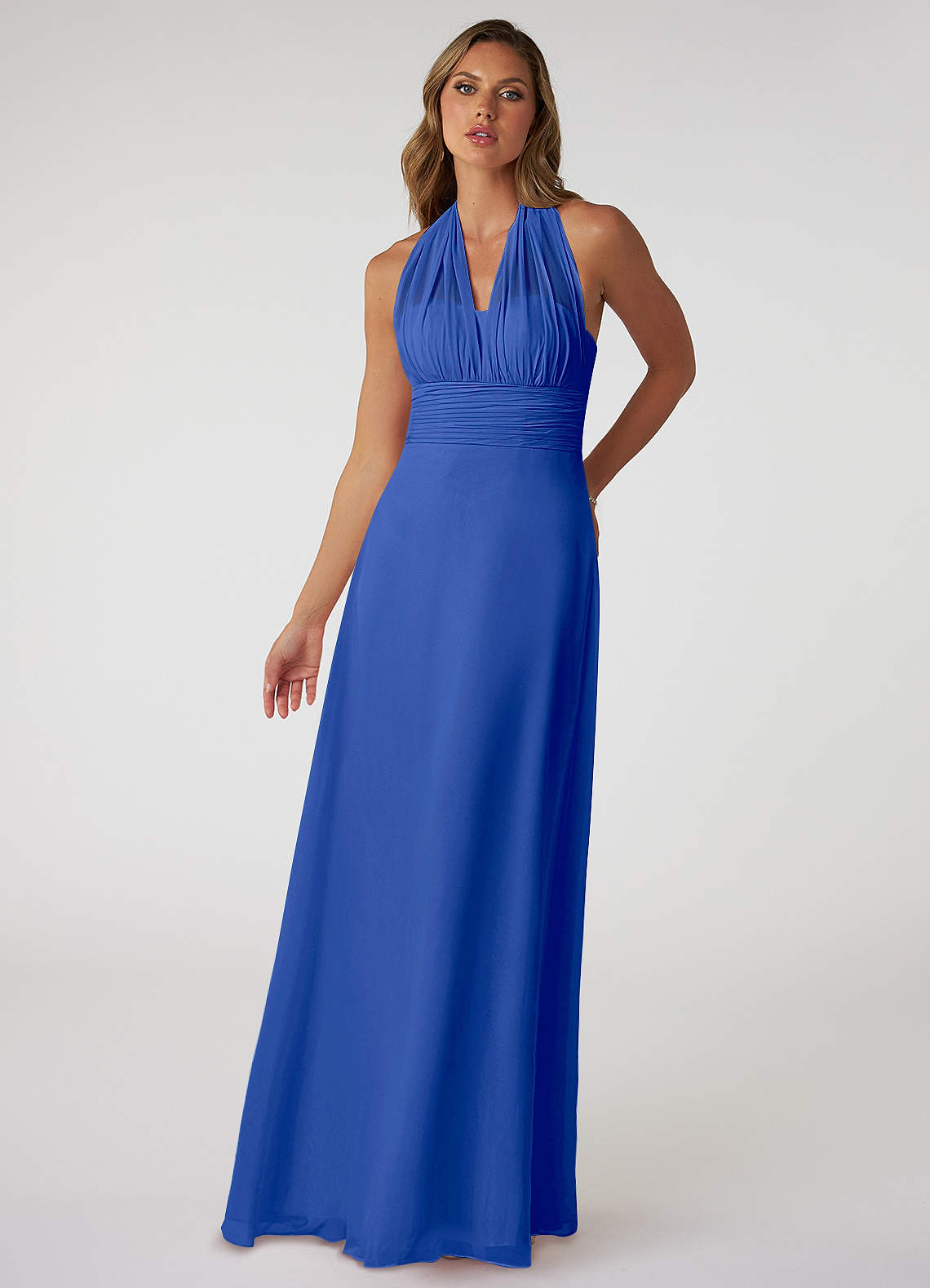 Royal Blue A-Line Strapless Chiffon Convertible Dress