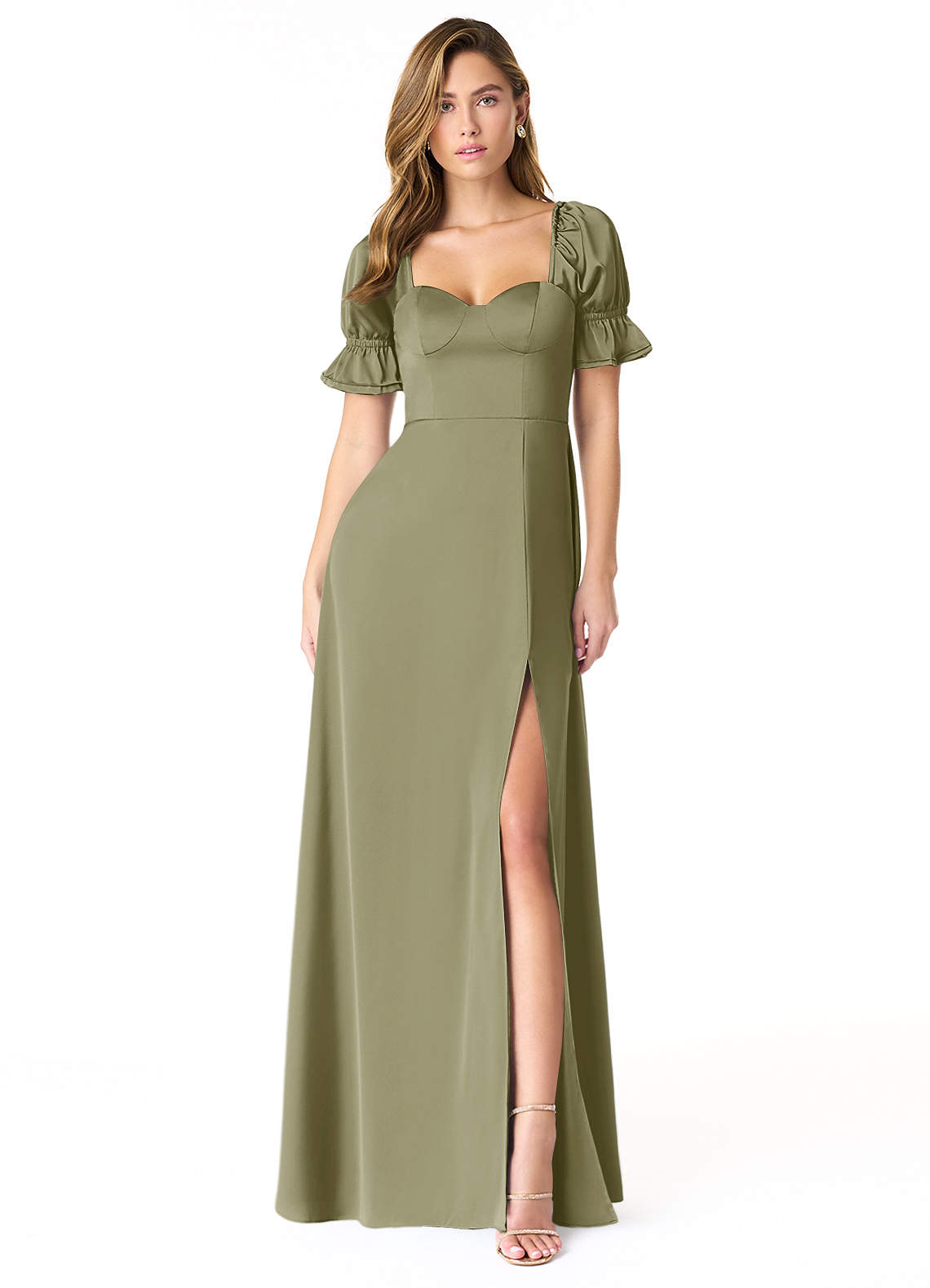 Dusty Blue A-Line Sweetheart Neckline Stretch Satin Dress