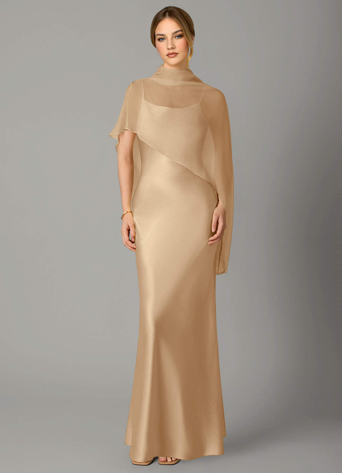 Champagne A-Line High Neck Stretch Satin Dress