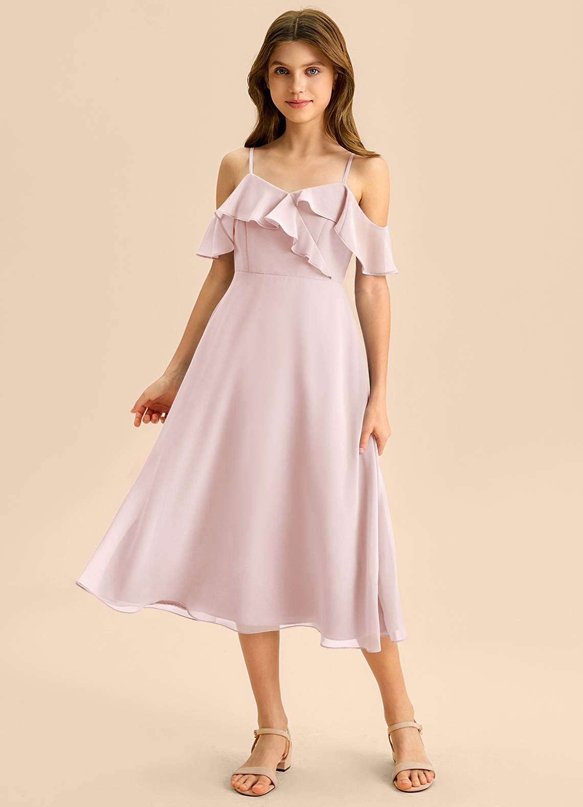 Blushing Pink A-Line Off the Shoulder Chiffon Dress