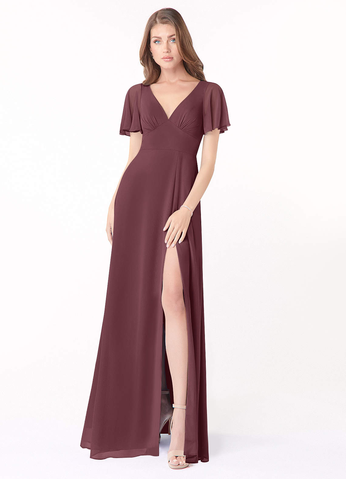 Sangria A-Line Flounce Sleeve Chiffon Dress