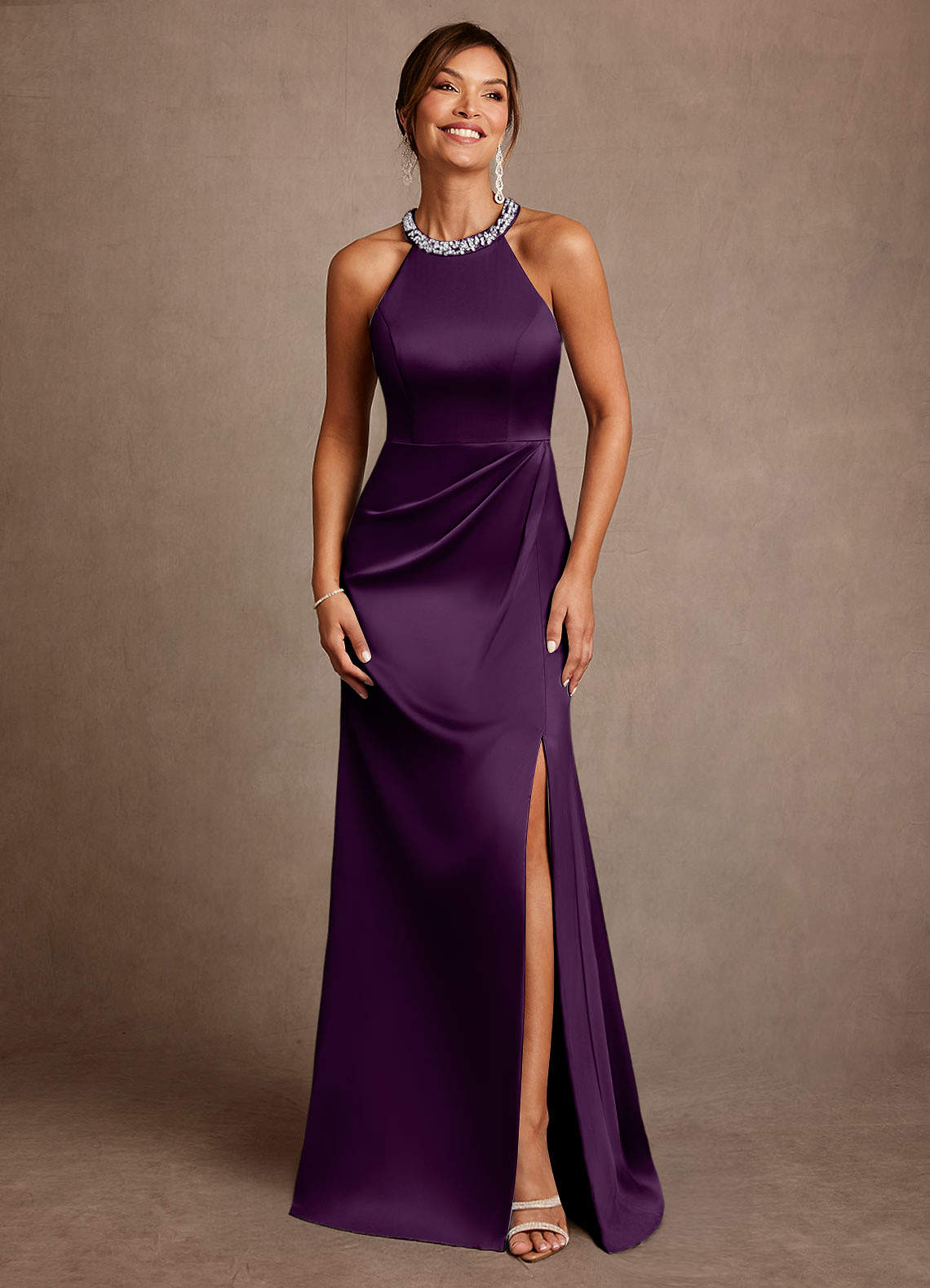Grape A-Line Pleated Stretch Satin Dress