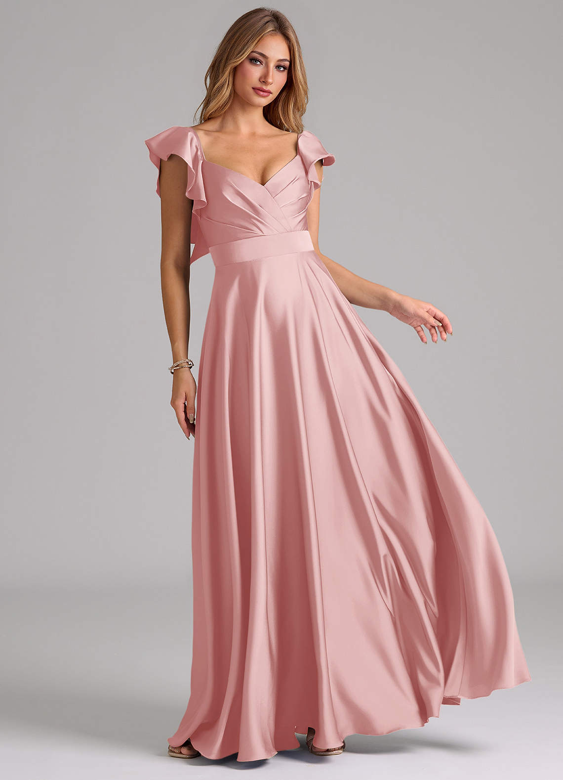 Powder Pink A-Line Ruched Stretch Satin Dress