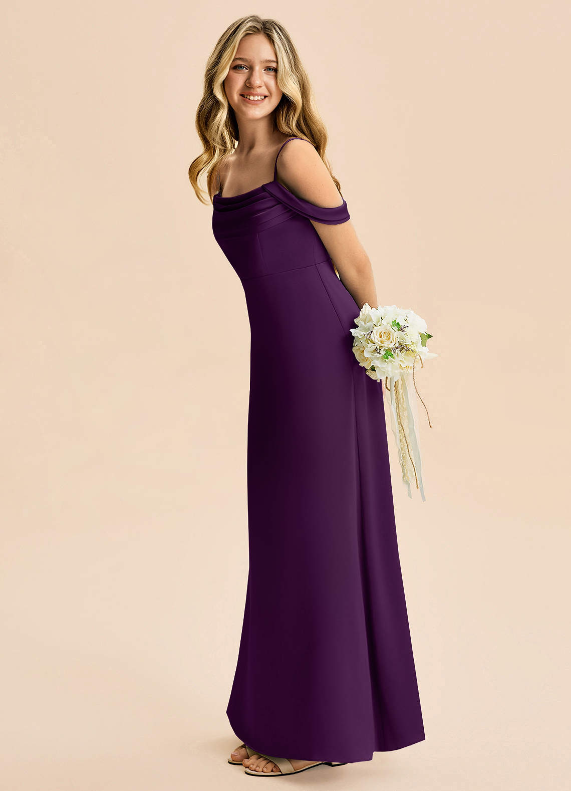 Grape A-Line Off the Shoulder Stretch Satin Dress