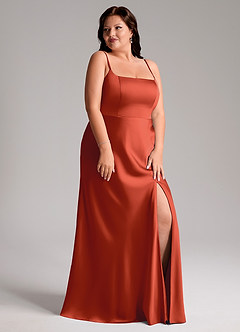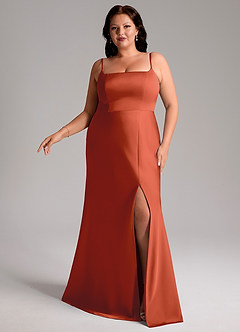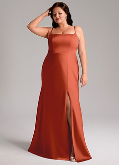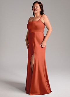 Rust Mermaid Side Slit Stretch Satin Dress