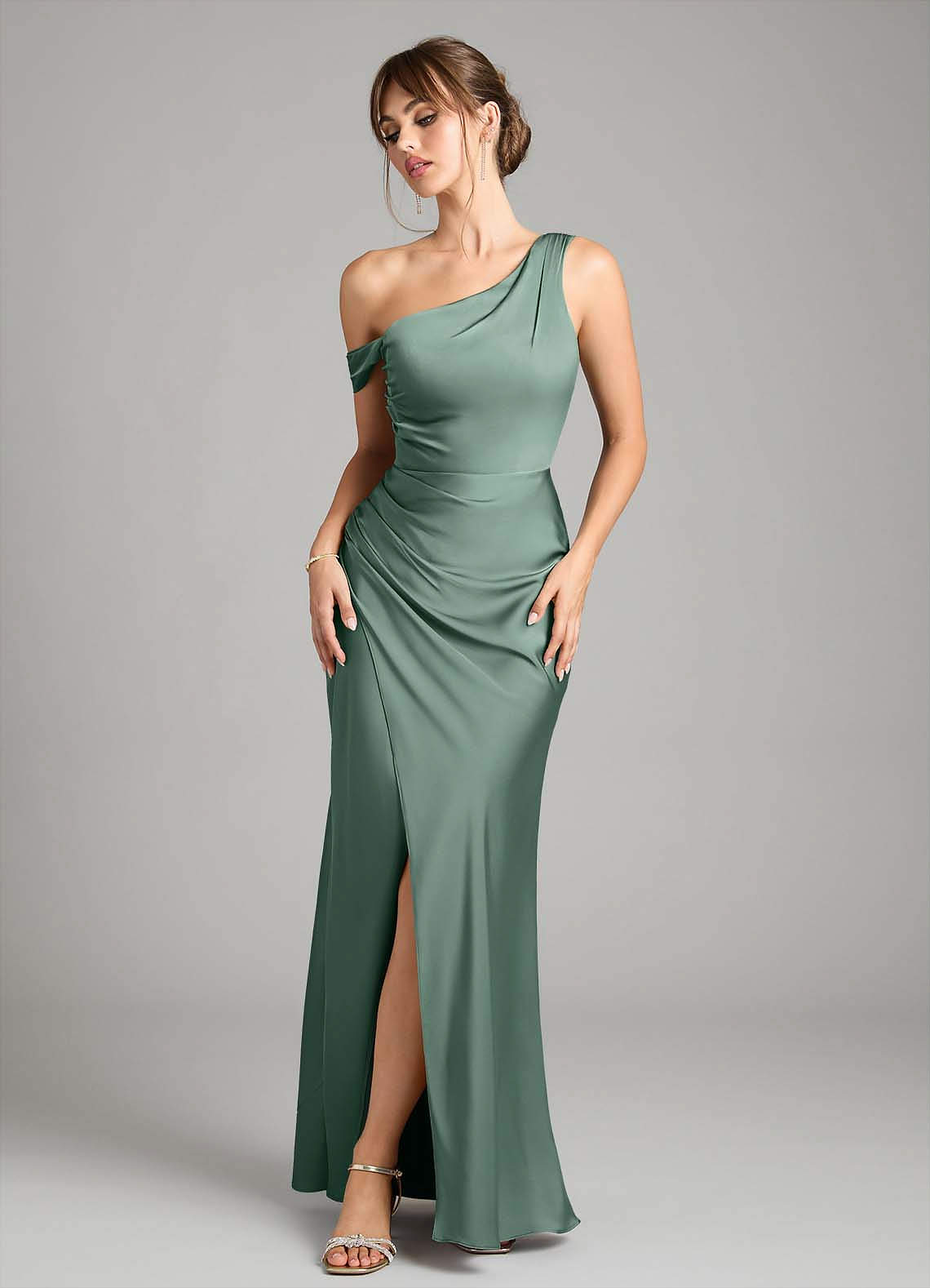 Eucalyptus Mermaid One Shoulder Stretch Satin Convertible Dress