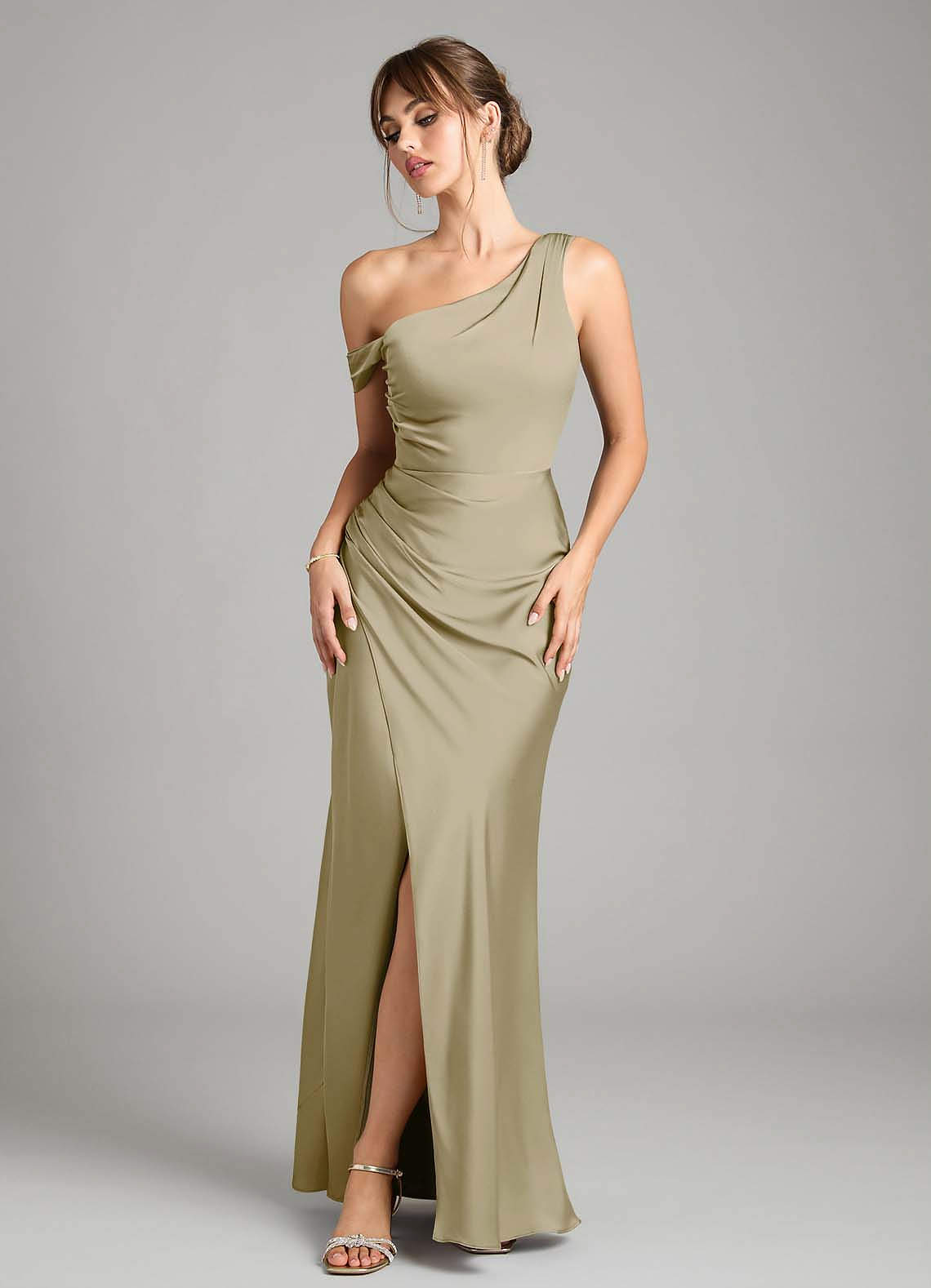 Moss Green Mermaid One Shoulder Stretch Satin Convertible Dress