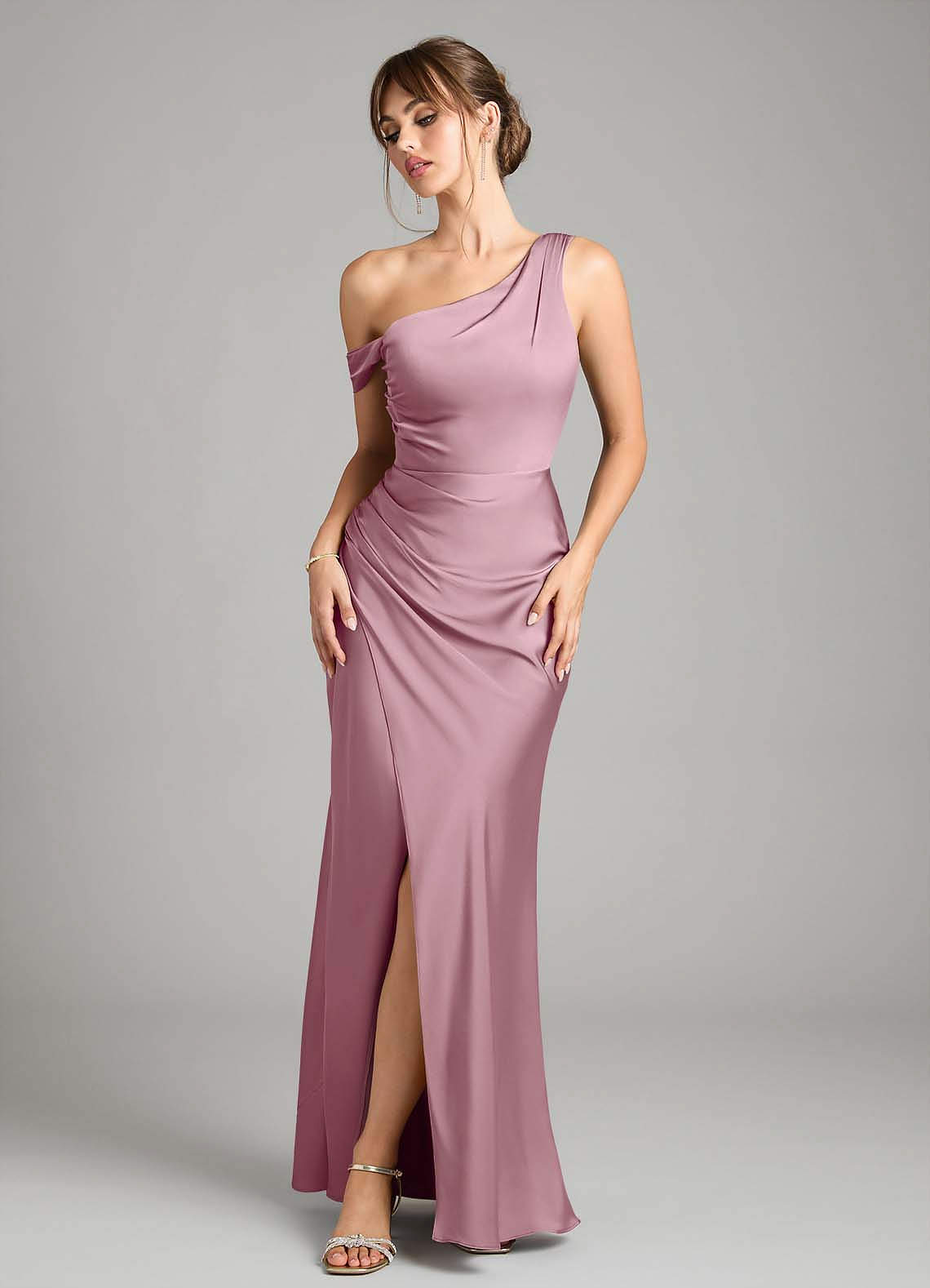 Vintage Mauve Mermaid One Shoulder Stretch Satin Convertible Dress