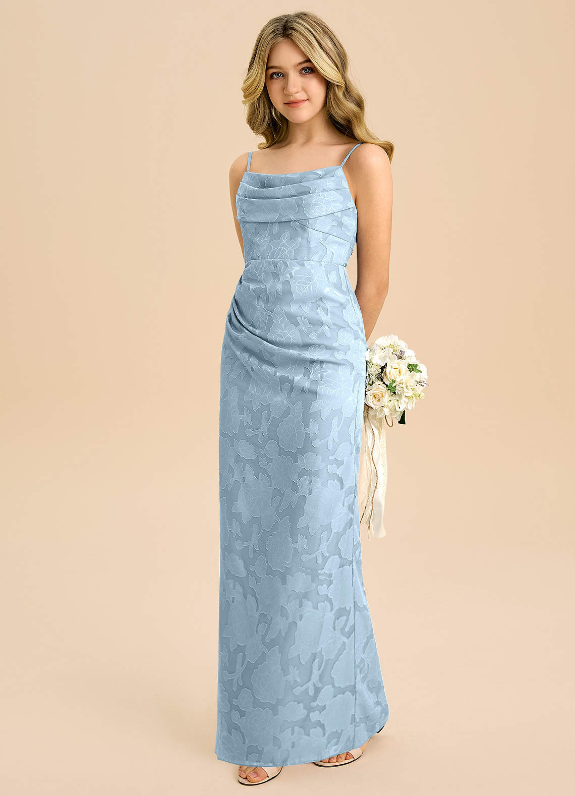 Sky Blue Sheath Pleated Floral Burnout Dress