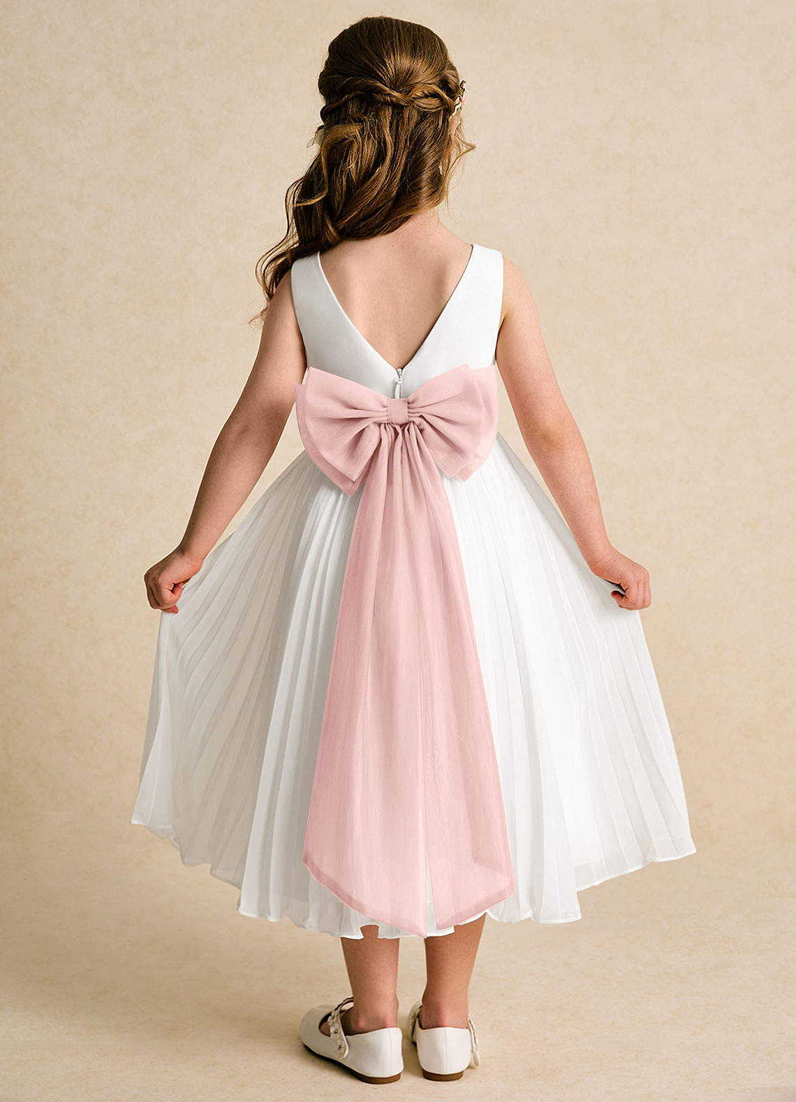 Ivory Powder Pink A-Line Pleated Chiffon Dress