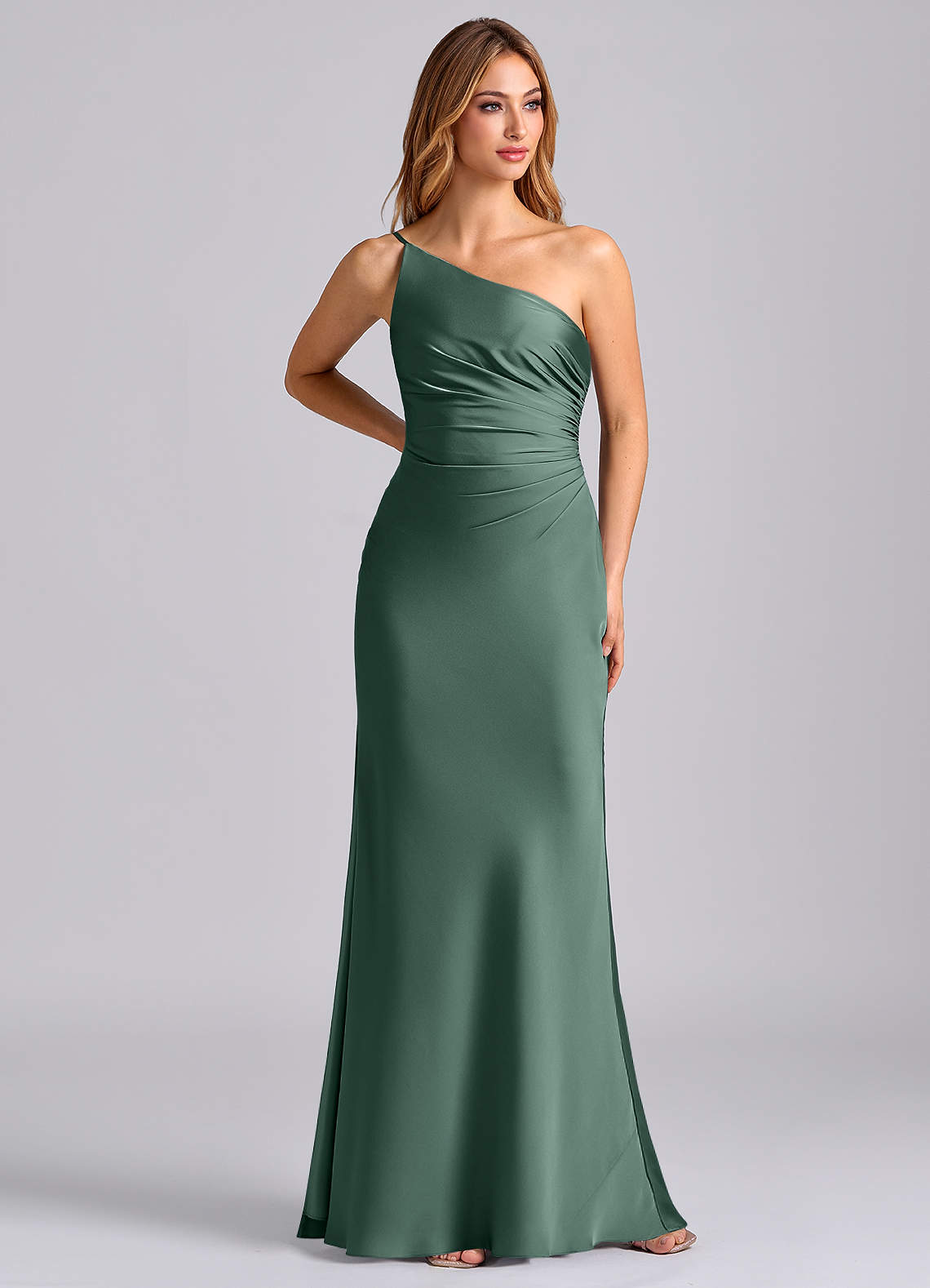 Eucalyptus Mermaid One Shoulder Stretch Satin Dress