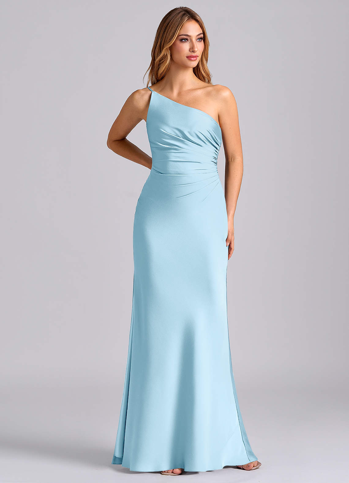 Sky Blue Mermaid One Shoulder Stretch Satin Dress