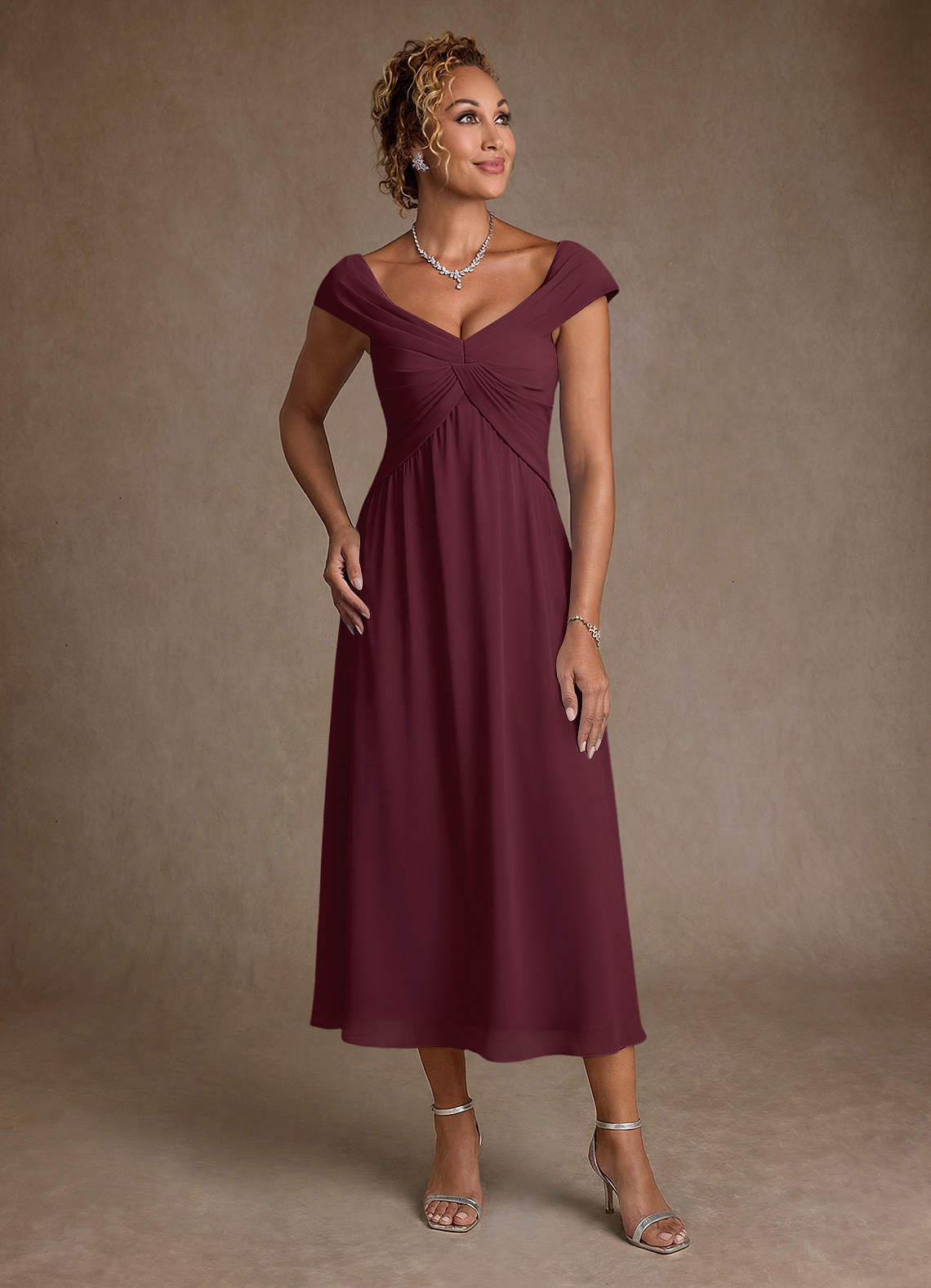 Cabernet A-Line Pleated Floral Burnout Dress