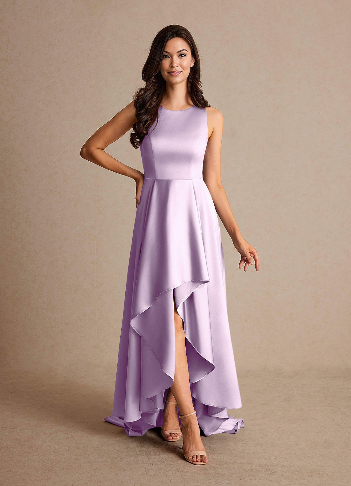 Frosted Lilac A-Line Trains Stretch Satin Dress