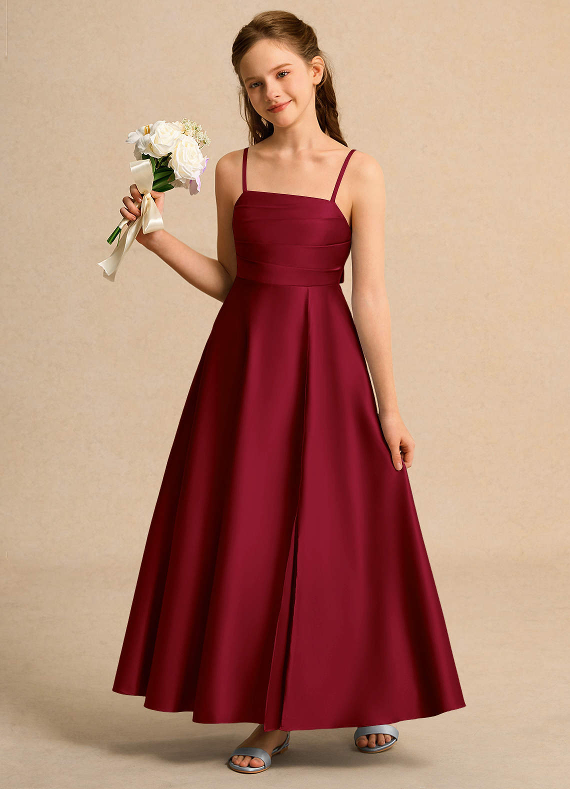 Burgundy A-Line Pleated Matte Satin Dress
