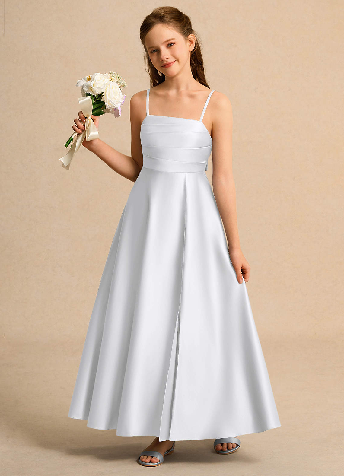 White A-Line Pleated Matte Satin Dress