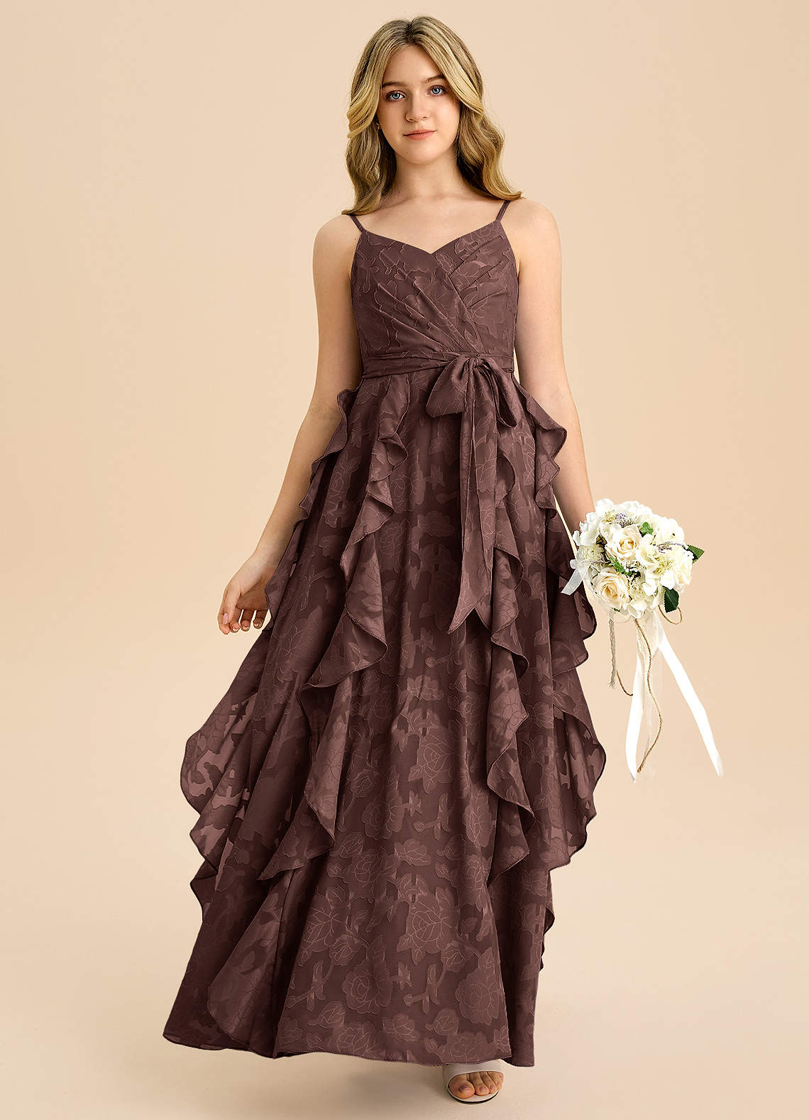 Espresso A-Line Pleated Floral Burnout Dress