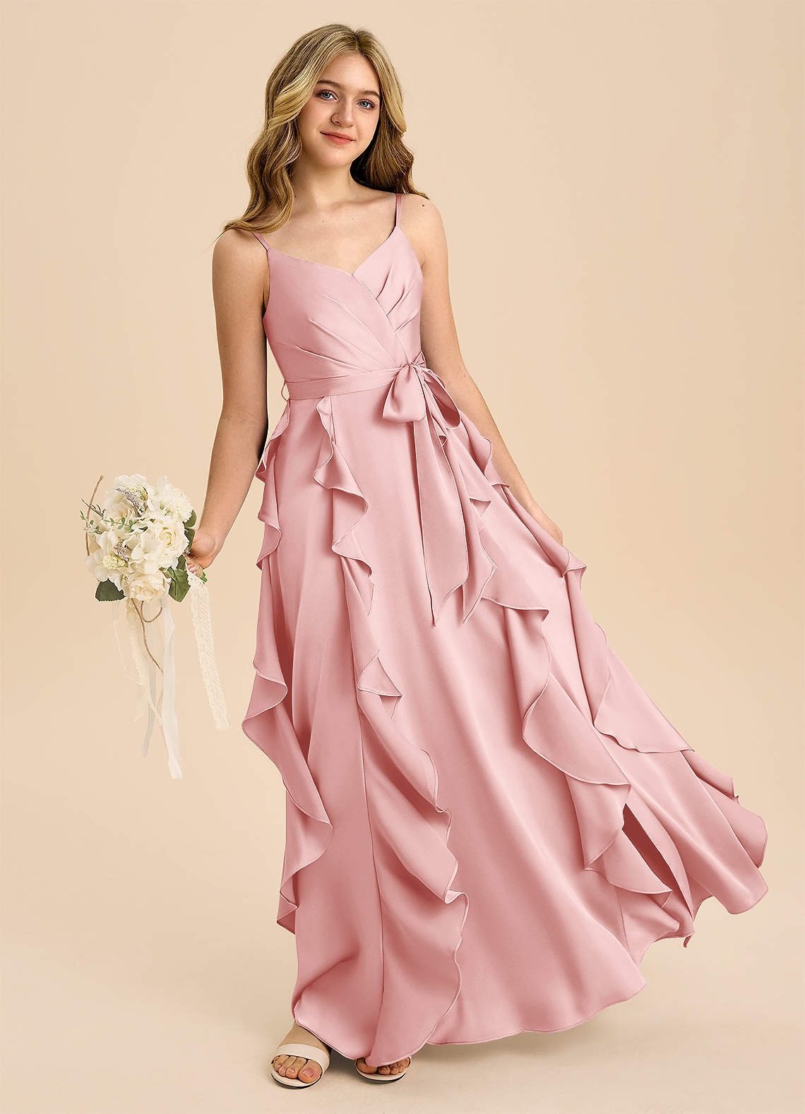 Powder Pink A-Line Pleated Stretch Satin Dress