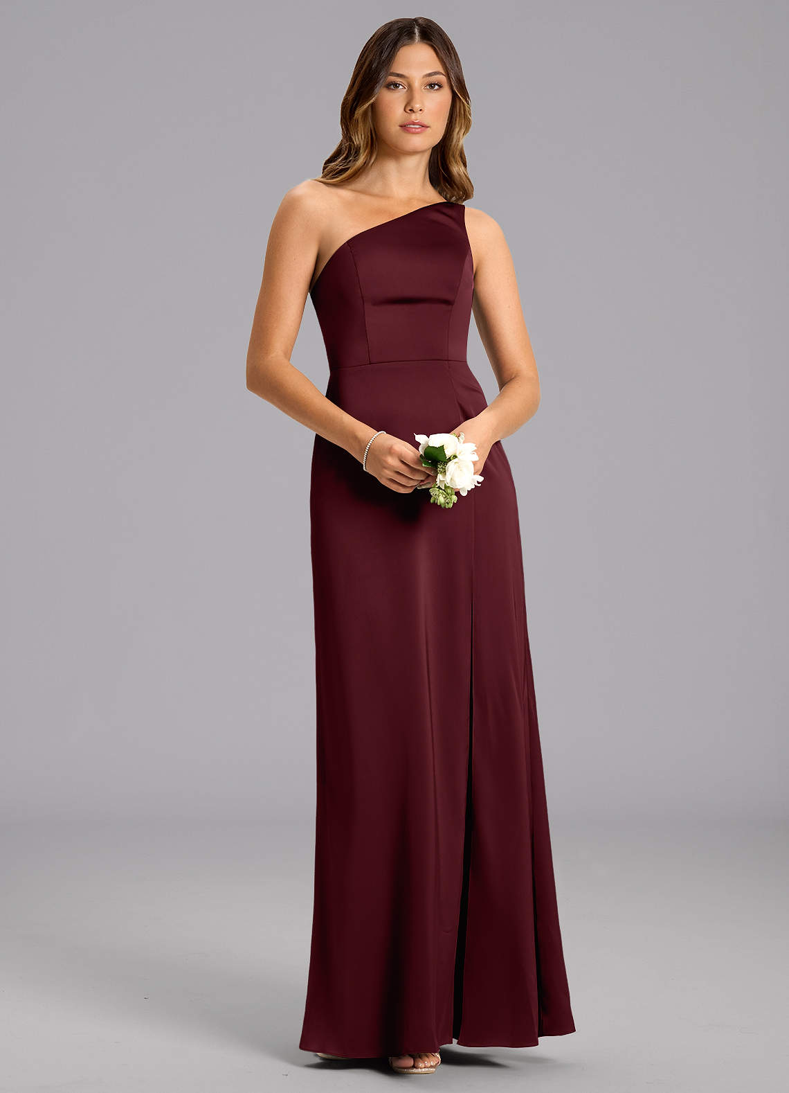 Cabernet A-Line One Shoulder Stretch Satin Dress